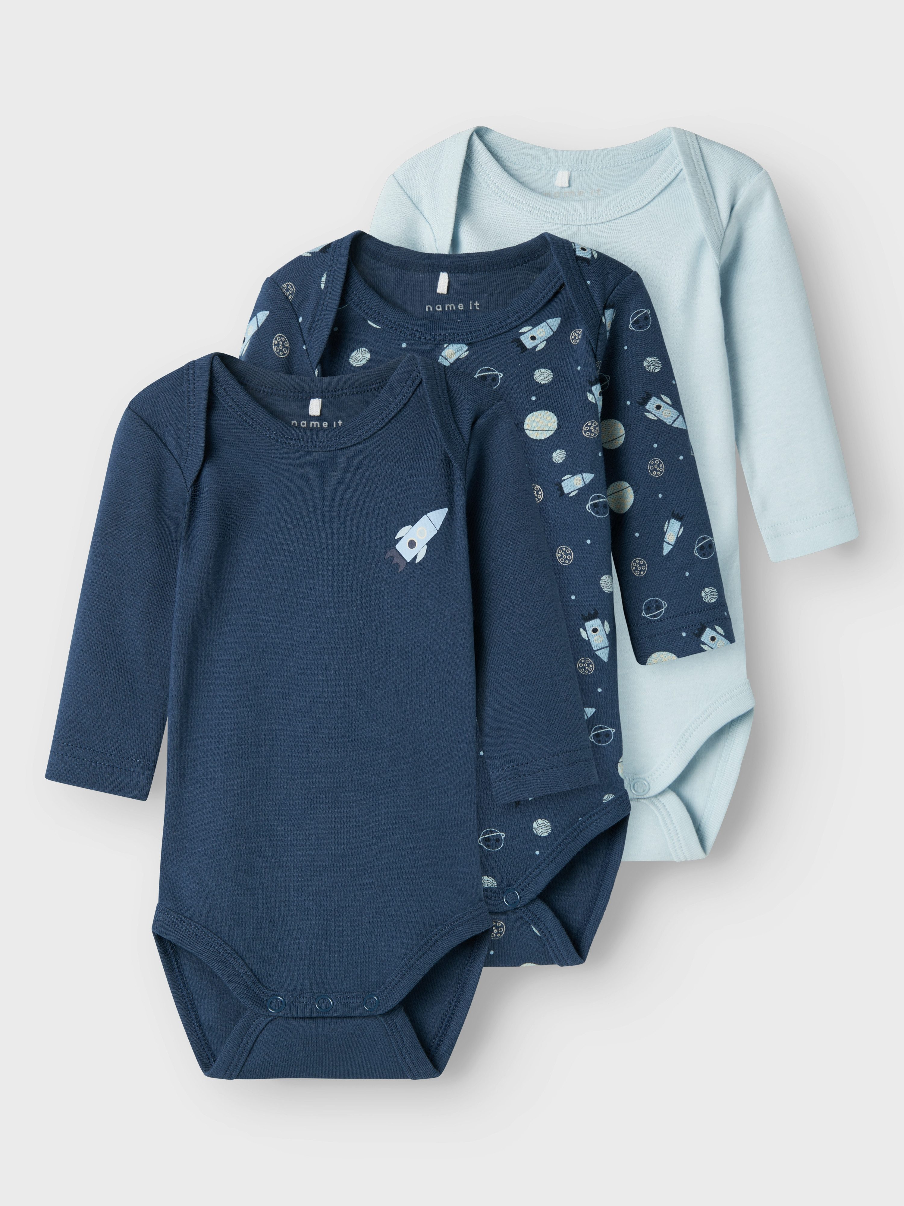 Name It Langarmbody NBMBODY 3P LS DARK SPACE NOOS (Packung, 3-tlg)