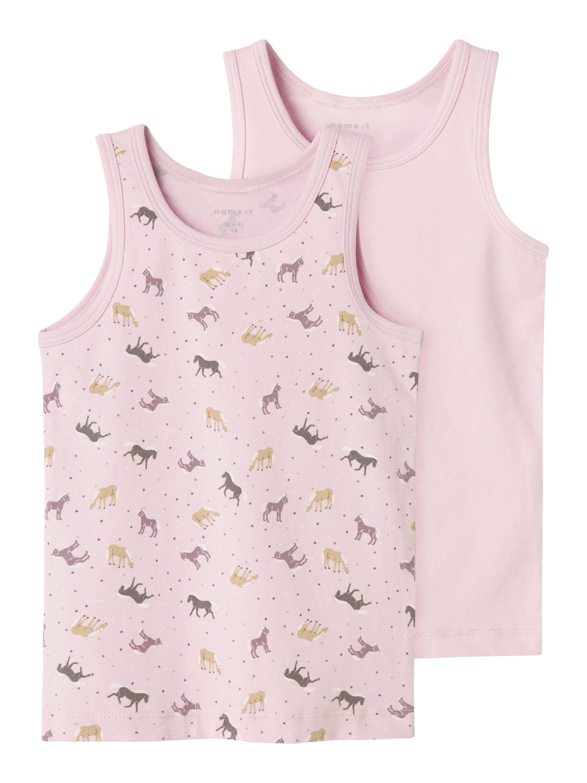 Das 2er-Pack Mädchen Unterhemden von Name it, Modell NMFTANK TOP 2P WINSOME HEARTS, bietet bezauberndes Design und hervorragenden Tragekomfort für Mädchen im Alter von 1 bis 5 Jahren. Die Unterhemden aus einem weichen Jersey mit Baumwolle und einem Elasthananteil sind hautsympathisch und ideal für empfindliche Kinderhaut. Das süße Herzchenmuster und die sanften Farbtöne machen jedes Unterhemd zum entzückenden Highlight. Diese Unterhemden sind vielseitig einsetzbar, pflegeleicht und unterstützen jeden kindlichen Stil von verspielt bis casual. Sie sind die perfekte Wahl für den täglichen Gebrauch, bieten Komfort und Stil und sind maschinenwaschbar.
