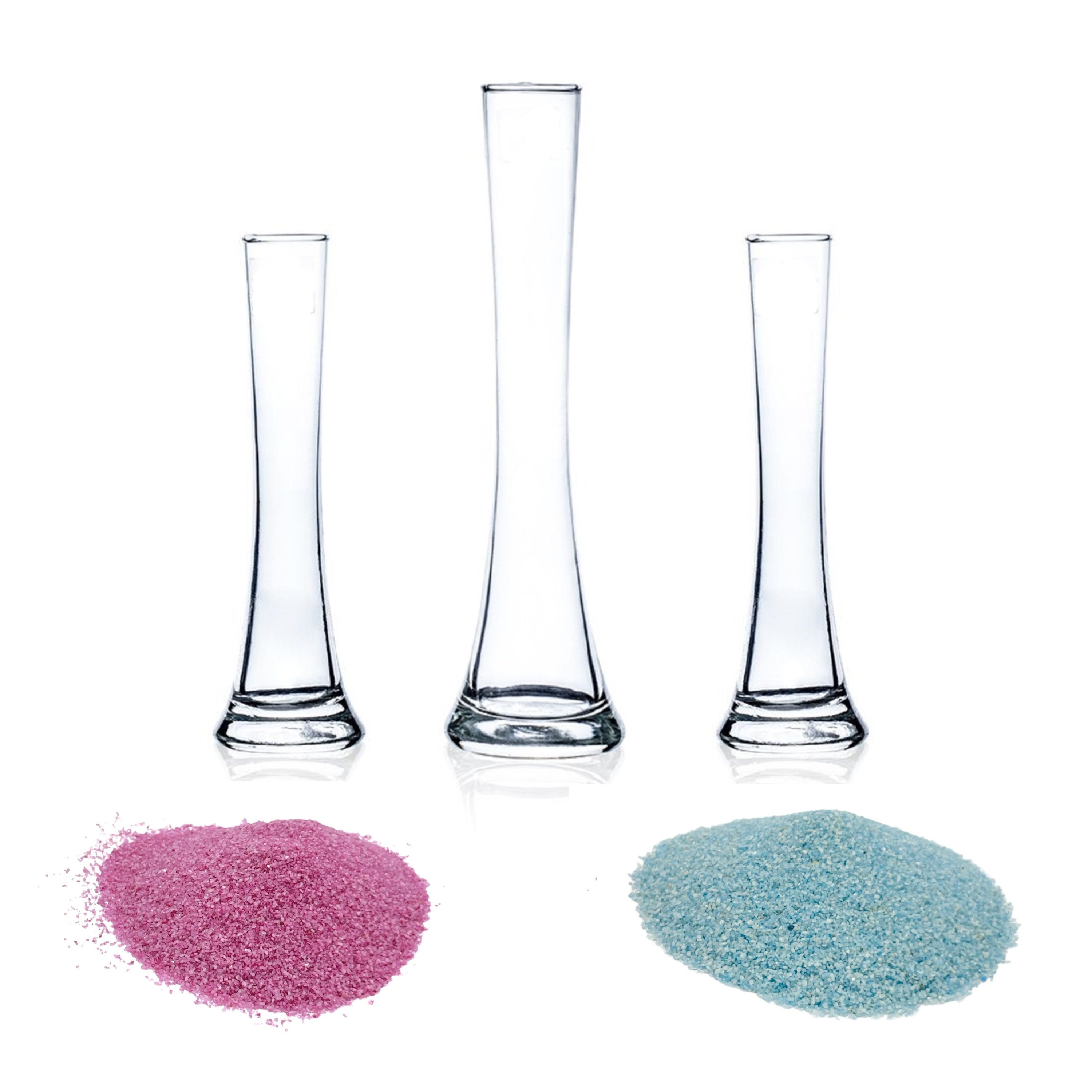 Gestalten Sie Ihre Zeremonien und besonderen Anlässe mit unserem Sandzeremonie-Set auf einzigartige Weise. Dieses Set umfasst zwei kleine Vasen, eine große Vase und zwei verschiedene Farben Sand, jeweils 500g.