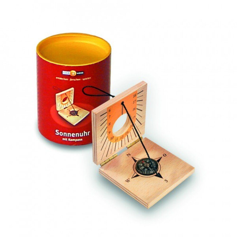 Jetzt schlägt´s 13! Die Sonnenuhr ist ein echtes Messinstrument für aufgeweckte kleine Zeitgenossen. Mit dem eingebauten Kompass wird sie präzise auf die Sonne ausgerichtet und zeigt dann sehr genau die Zeit an. Geschlossen hat sie in jeder Abenteurer-Hosentasche Platz. Dazu gibt es eine ausführliche Bedienungsanleitung mit allen Hinweisen.