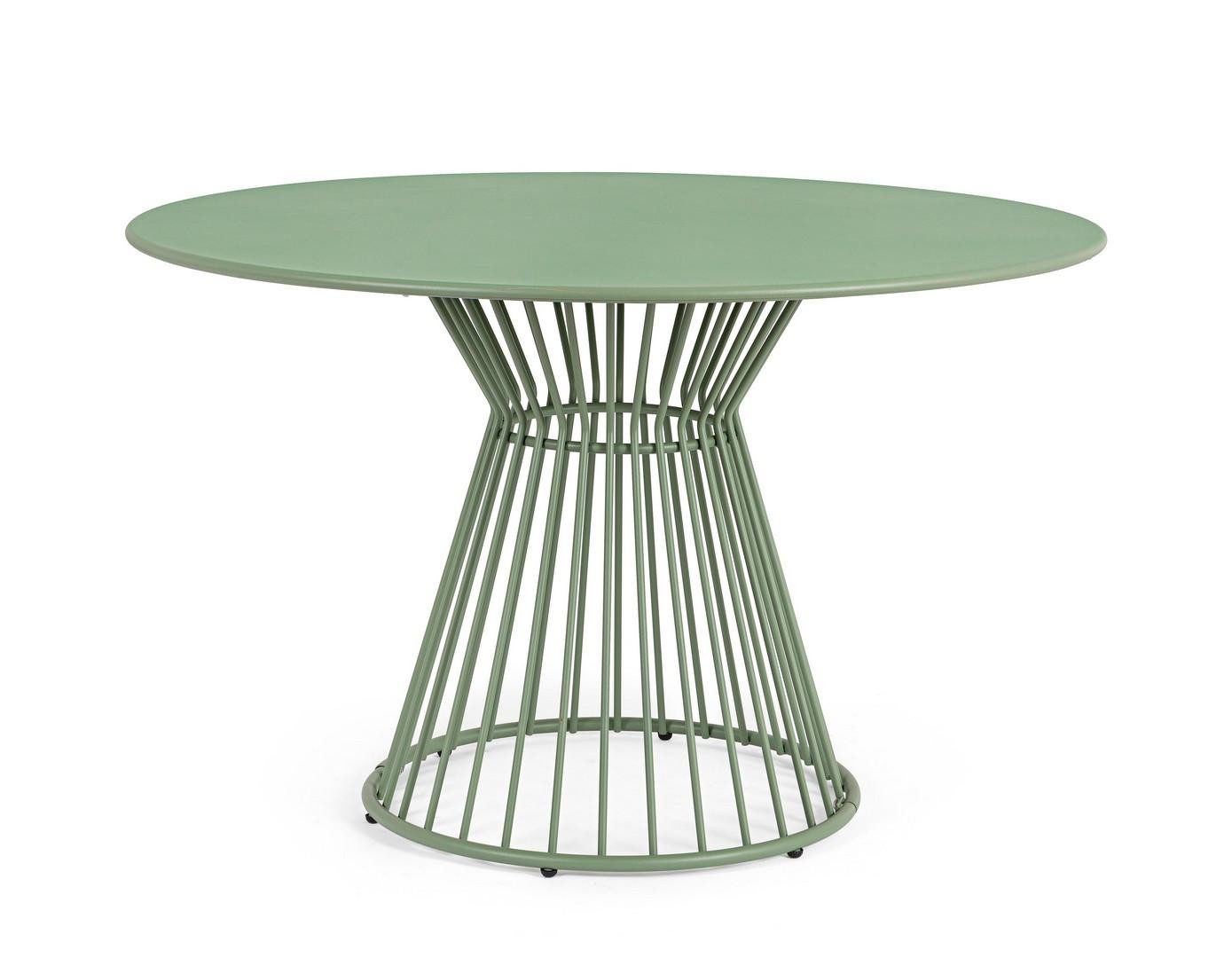 Dieser runde Tisch vereint minimalistisches Design, moderne Farbgebung und wetterfeste Materialien zu einem stilvollen Highlight für den Außenbereich. Mit seiner satten, matten Oberfläche in elegantem Grün, der robusten Stahlkonstruktion und der durchdachten Funktionalität eignet er sich ideal als zentraler Treffpunkt auf der Terrasse, dem Balkon oder im Garten – vom Frühstück im Freien bis zum geselligen Abendessen unter freiem Himmel. Gefertigt aus solidem Stahl und vollständig pulverbeschichtet, ist dieser Tisch besonders widerstandsfähig gegenüber Witterungseinflüssen. Die hochwertige Pulverbeschichtung schützt das Material vor Korrosion und sorgt gleichzeitig für eine edle, matte Oberfläche, die angenehm griffig ist und dem Tisch seine elegante Ausstrahlung verleiht. Der grüne Farbton wirkt ruhig, natürlich und dennoch modern – er fügt sich harmonisch in jede Outdoor-Umgebung ein und ergänzt sowohl klassische als auch zeitgemäße Terrassenmöbel perfekt. Die runde Tischplatte mit einem Durchmesser von 120 Zentimetern bietet ausreichend Platz für bis zu sechs Personen und schafft durch ihre Form eine besonders kommunikative Atmosphäre – ideal für gesellige Runden, ungezwungene Mahlzeiten oder entspannte Stunden mit einem Glas Wein im Freien. Die pflegeleichte Oberfläche lässt sich einfach abwischen und bleibt auch bei häufiger Nutzung schön und widerstandsfähig. Der mittig platzierte Standfuß sorgt nicht nur für eine moderne, luftige Optik, sondern garantiert auch Stabilität und Beinfreiheit rundum. Ausgestattet mit verstellbaren Füßen lässt sich der Tisch individuell an Bodenunebenheiten anpassen – ein praktisches Detail, das für festen Stand auf verschiedenen Untergründen wie Stein, Holz oder Rasen sorgt.