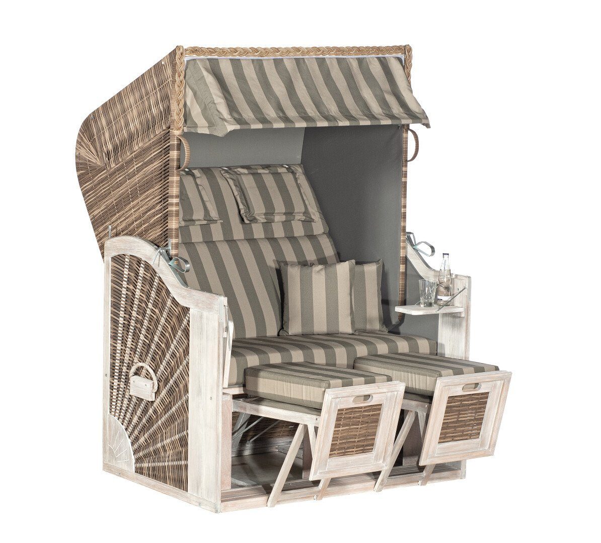 Der Strandkorb ist ein 2-sitzer im 3/4-liegemodell. Der Strandkorb ist aus Kunststoffgeflecht in Strukturpolyester. Der Strandkorb hat Fußkissen, Nackenkissen und höhenverstellbare Fußstützen. Der Strandkorb macht mit seinem schicken Aussehen einen tollen Eindruck in Ihrem Garten. Gönnen Sie sich eine Auszeit und schalten Sie ab. Der Rustikal 285Z macht's möglich.