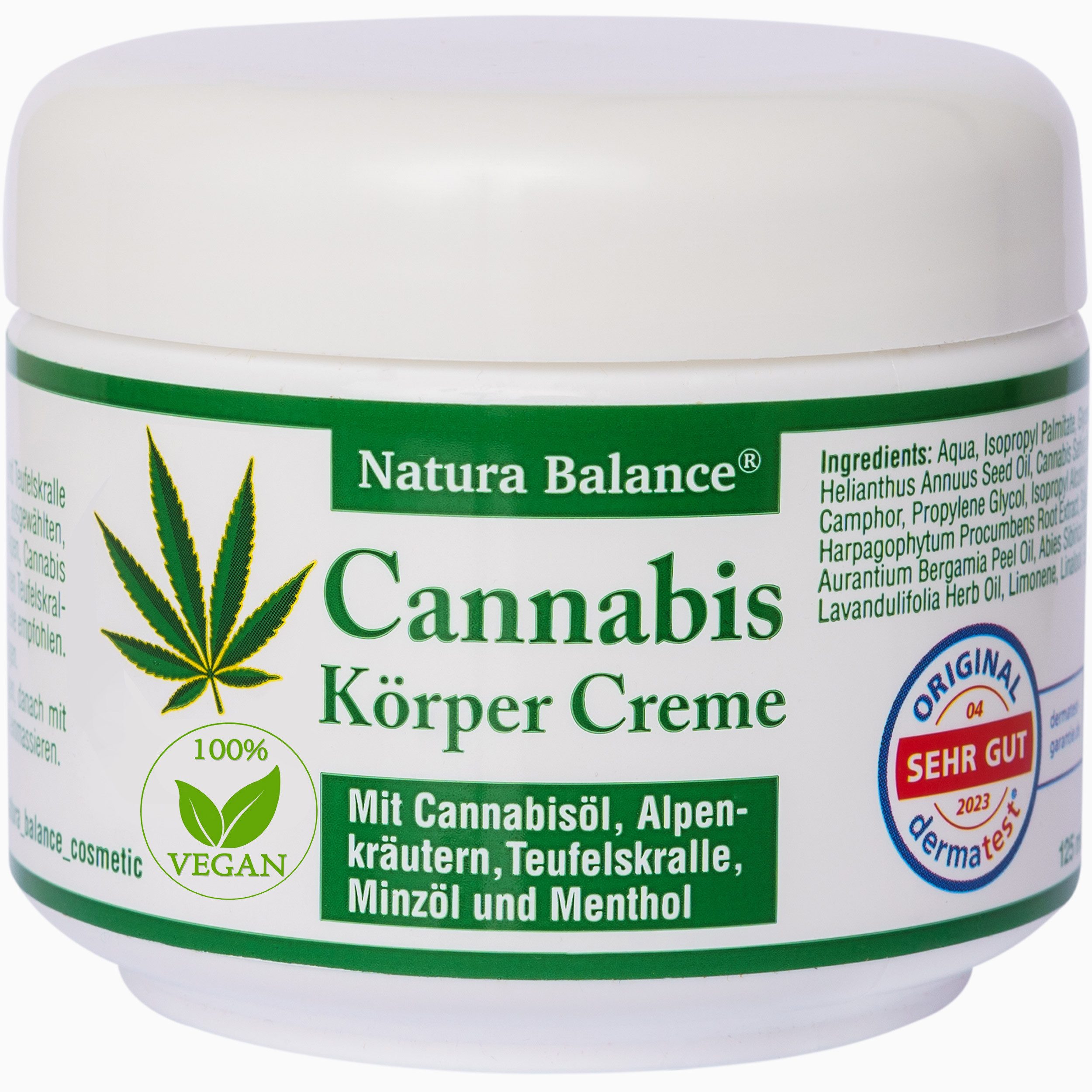 3 Dosen a 125 ml NATURA BALANCE Cannabisöl mit natürlichen Alpenkräutern, Minzöl, Menthol und Teufelskralle Balsam. Dermatologisch getestet durch DERMATEST Münster ,04/2023. Testurteil : sehr gut. Apotheken PZN 18831167 Kosmetikum CPNP 4296290 Die Creme wird für müde, schmerzende oder entzündete Körperteile empfohlen. Ideale Haut- und Muskelpflege für Sport- und Reflexmassagen. Kühlend durch Menthol & Minzöl für beanspruchte Muskeln z.B. in Beinen, Schultern oder Rücken. Die Kraft der Natur, aus den ältesten traditionellen Pflanzen. Unseren Experten im Labor ist eine perfekte Rezeptur gelungen. Die Cannabis Creme mit Hanföl und Teufelskralle ist eine optimale Mischung aus sorgfältig ausgewählten , traditionellen Kräutern aus den Alpen, Cannabisöl und dem in Afrika beliebten und weit verbreiteten Teufelskrallen-Extrakt. Das wertvolle Cannabisöl (Cannabis Sativa Seed Oil) aus der Hanfpflanze, kann bei Gelenkschmerzen hilfreich unterstützen. Die Mixtur aus 4 natürlichen Wirkstoffen ist angenehm wohltuend. Cannabis Creme enthält nicht das berauschende THC und ist daher absolut frei von Nebenwirkungen jeglichen Suchtpotenzials und natürlich völlig legal. 100% vegan. Durch das muskelpflegende Menthol und Minzöl wird die Wirkung des Cannabisöls perfekt ergänzt. Die Cannabis Creme einfach auf die entsprechenden Muskelpartien an Knie, Bein, Rücken, Nacken, Hüfte, Arme, Ellenbogen und Schultern aufgetragen. Diese Creme fühlt sich nicht fettig an, sie zieht schnell ein, ohne Flecken auf der Haut oder Kleidung zu hinterlassen und ist leicht kühlend. Hergestellt in Deutschland. Gesamt 3 Dosen je 125ml = 375 ml . Dieses Produkt ist ein reines Kosmetikum,- nur zur äußerlichen Anwendung.