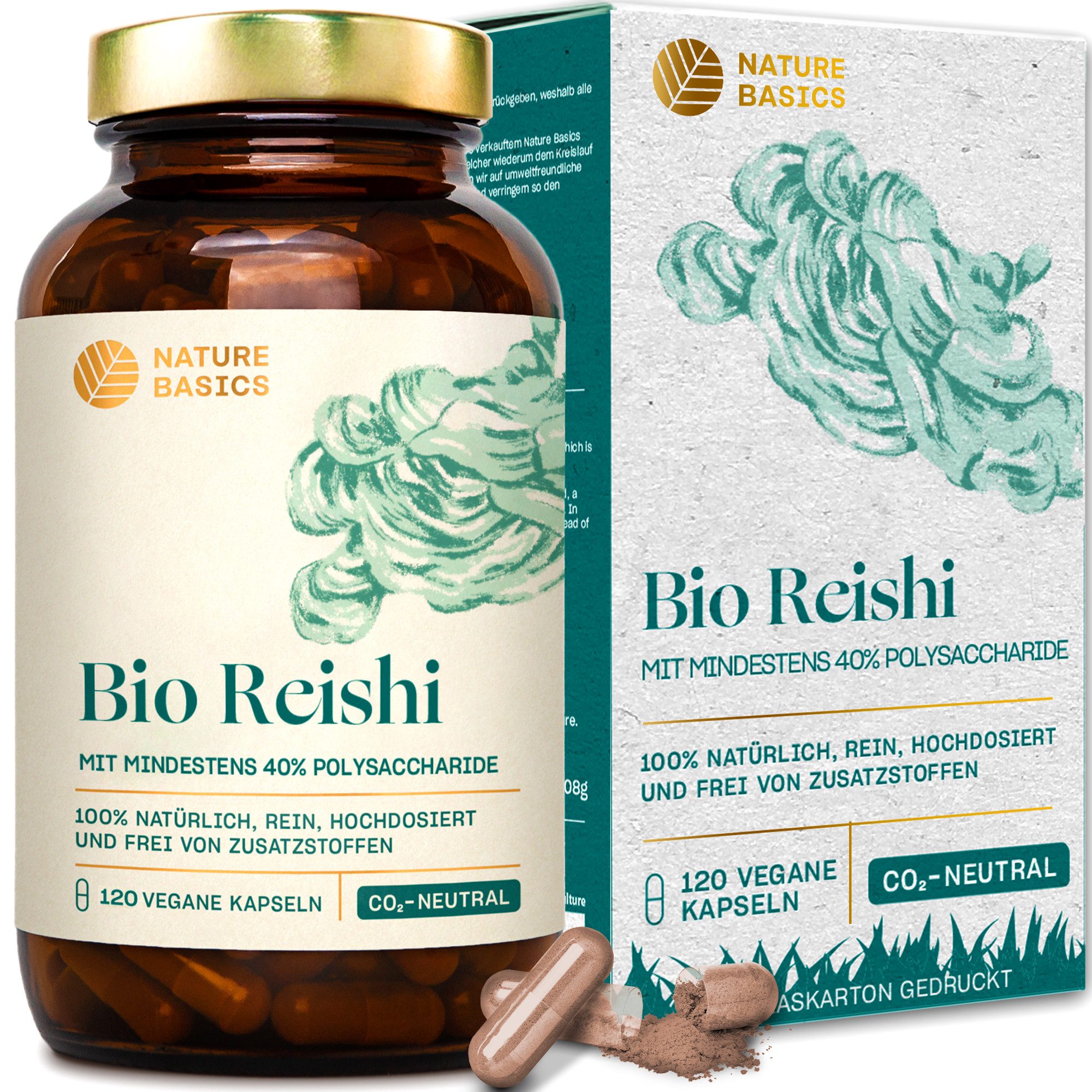 120 Kapseln mit hochdosiertem 500 mg bis 1.500 mg Bio Reishi Extrakt pro Tagesdosis (1 bis 3 Kapseln), davon sind 200 mg bis 600 mg Polysaccharide. Wir von Nature Basics empfehlen 1 bis 3 natürliche Bio Reishi Kapseln pro Tag, je nach Bedarf.