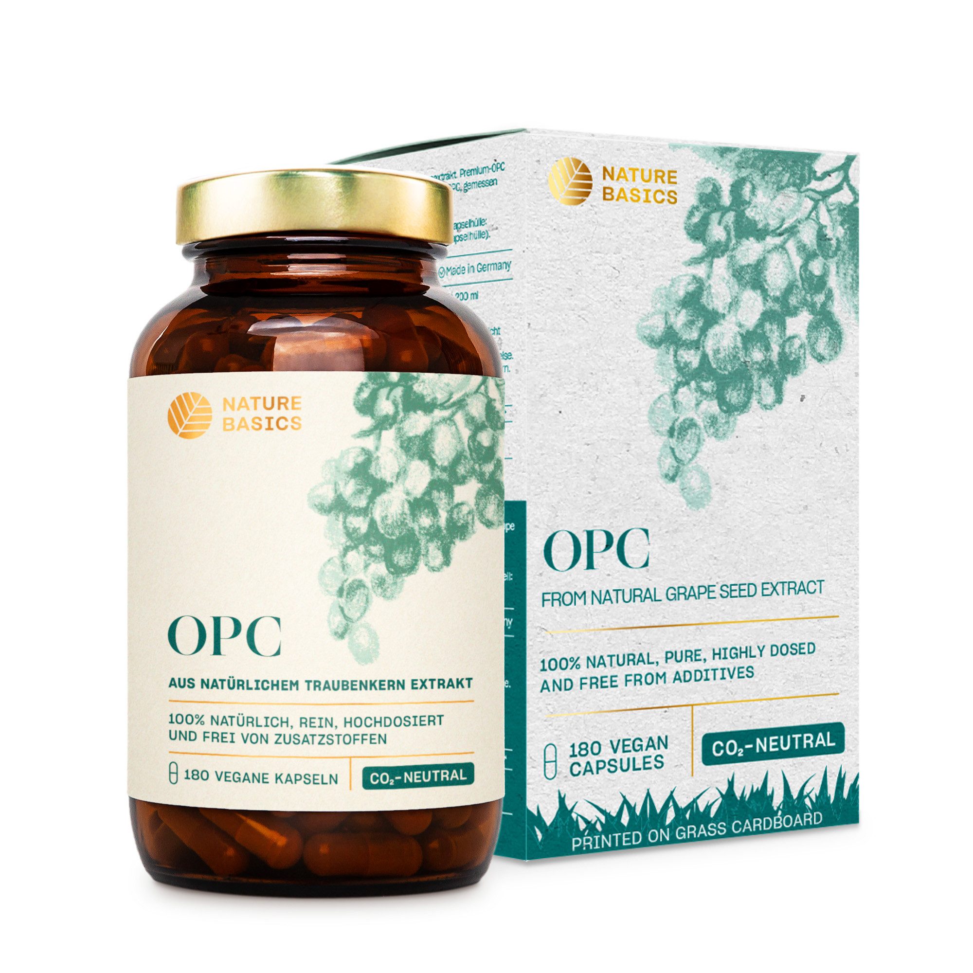 OPC (Oligomere Proanthocyanidine) wird im Allgemeinen als eines der bekanntesten natürlichen Antioxidantien beschrieben. Besonders viel OPC, und damit freie Radikalefänger, stecken in Traubenkernen, weshalb wir das OPC unserer Kapseln aus Traubenkern Extrakt gewinnen. Traubenkernextrakt wird gern für die Haut und zum Zellschutz verwendet. Außerdem ist es beliebt im Anti Aging Bereich und wird von vielen bei Entzündungen eingenommen.