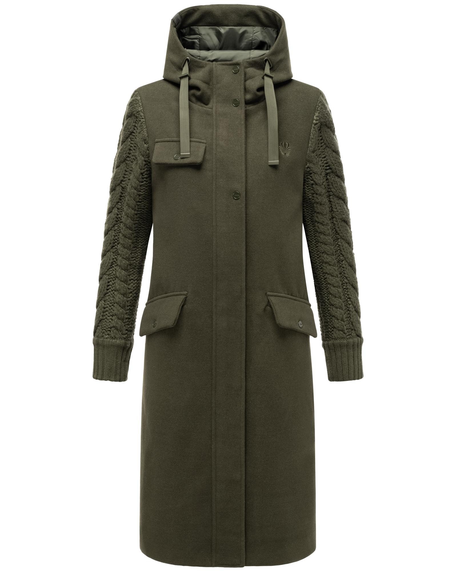 Besondere Merkmale | Weicher Übergangsmantel mit gestrickten Ärmeln |
