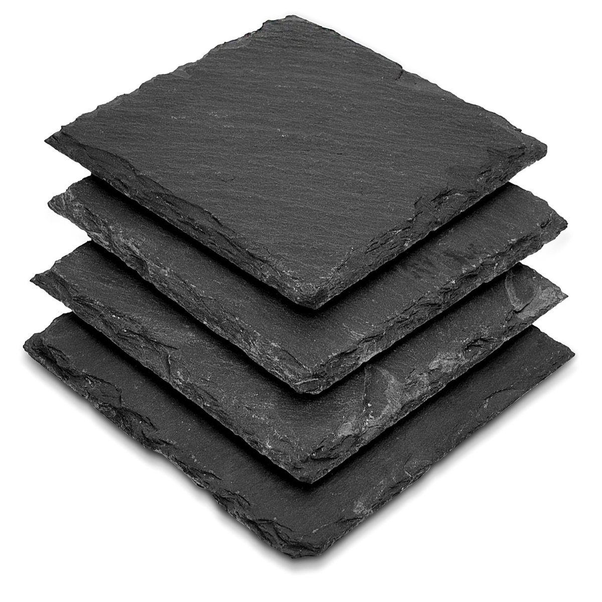LIEFERUMFANG 4x Schiefer Untersetzer mit EVA-Schaumstoff Schutznoppen (Unterseite)