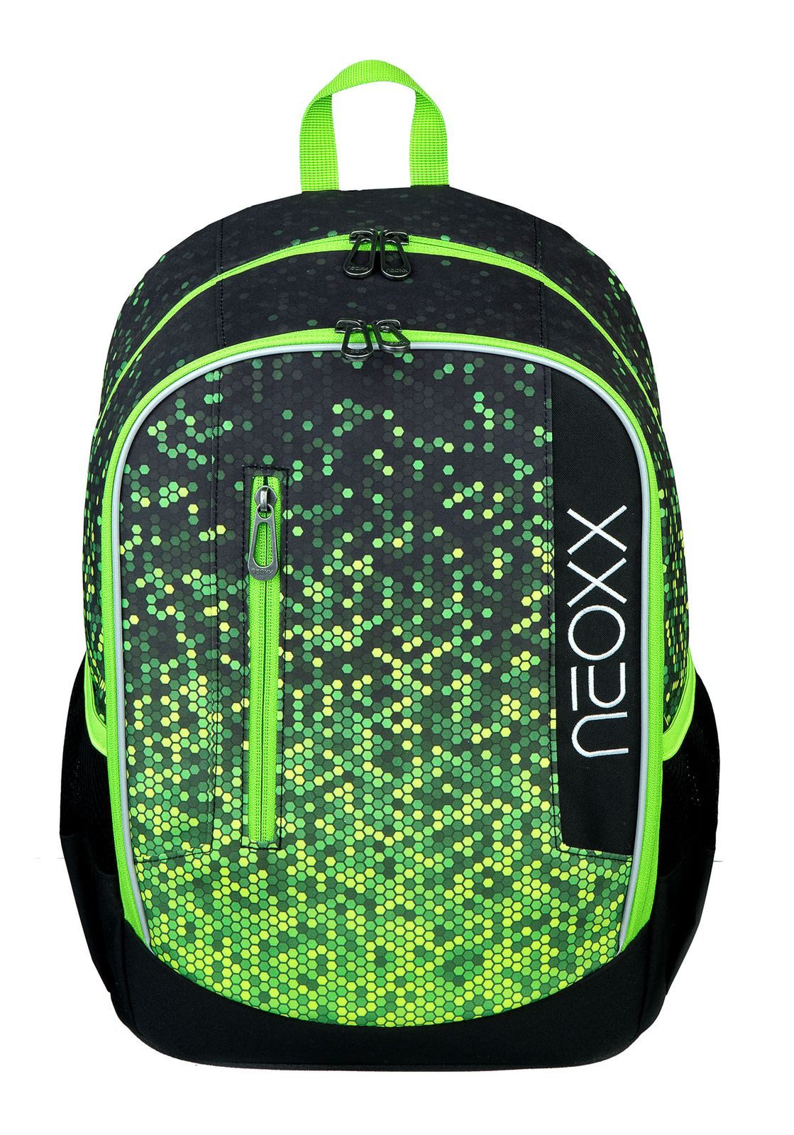 Der »Flow« Rucksack von neoxx ist dein perfekter Begleiter für Schule und Freizeit. Dank seines ergonomischen Rückenpolsters und des Lendenwirbelpolsters erlebst du beim Tragen ein angenehmes Gefühl von Unterstützung und Komfort. Die gepolsterten Träger sorgen für zusätzlichen Tragekomfort und ermöglichen es dir, den Rucksack stundenlang auf deinen Schultern zu tragen, ohne dass es unangenehm wird. Als zusätzliches Feature ist der Brustgurt abnehmbar, damit du ihn ganz nach deinen Bedürfnissen anpassen kannst. Mit einem Fassungsvermögen von ca. 20 Litern bietet der Flow Rucksack jede Menge Platz für alles, was du für Schule oder Freizeit brauchst. Das große Einschubfach und der Laptop-Einschub bieten ausreichend Stauraum für Bücher, Hefte, Laptops oder Tablets. Gut organisiert - das Vorfach des Rucksacks verfügt über einen praktischen Organizer mit Steckfach und Reißverschlussfach. Zusätzlich sind seitliche Netztaschen vorhanden, um Getränkeflaschen oder andere Dinge sicher aufzubewahren. Neben seiner Funktionalität überzeugt der Flow Rucksack auch durch seine Robustheit. Der standfeste Boden und robusten, wasserabweisenden Material schützen deine Sachen und garantieren lange Freude am Rucksack, egal wohin dich dein Abenteuer führt. Das Innenfutter des Rucksacks besteht zu 100 % aus recycelten PET-Flaschen. Für den Flow Rucksack werden ca. 7 Flaschen recycelt. Zusätzlich hilft neoxx in Zusammenarbeit mit der Turtle Foundation Meeresschildkröten in einer sicheren Umgebung zu schlüpfen.