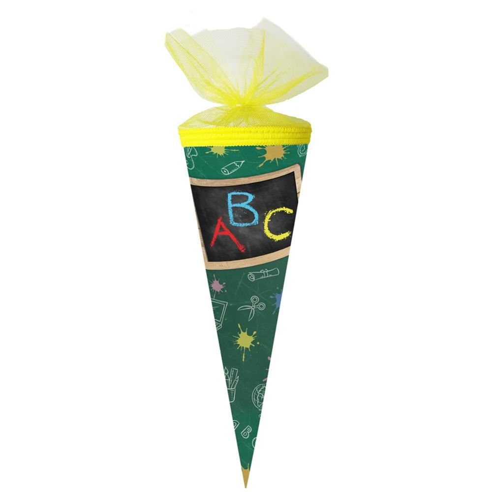 Klassische Schultüte mit Kreidebuchstaben und grüner Tafel als Hintergrund. Diese neutrale ABC-Schultüte eignet sich für Jungen und Mädchen gleichermaßen. Auch als Geschenkidee für Kindergärten an zukünftige Schulanfänger eine tolle Sache. Mit Nestler Zuckertüten wird der Schulanfang zum unvergesslichen Ereignis - Made in Germany!