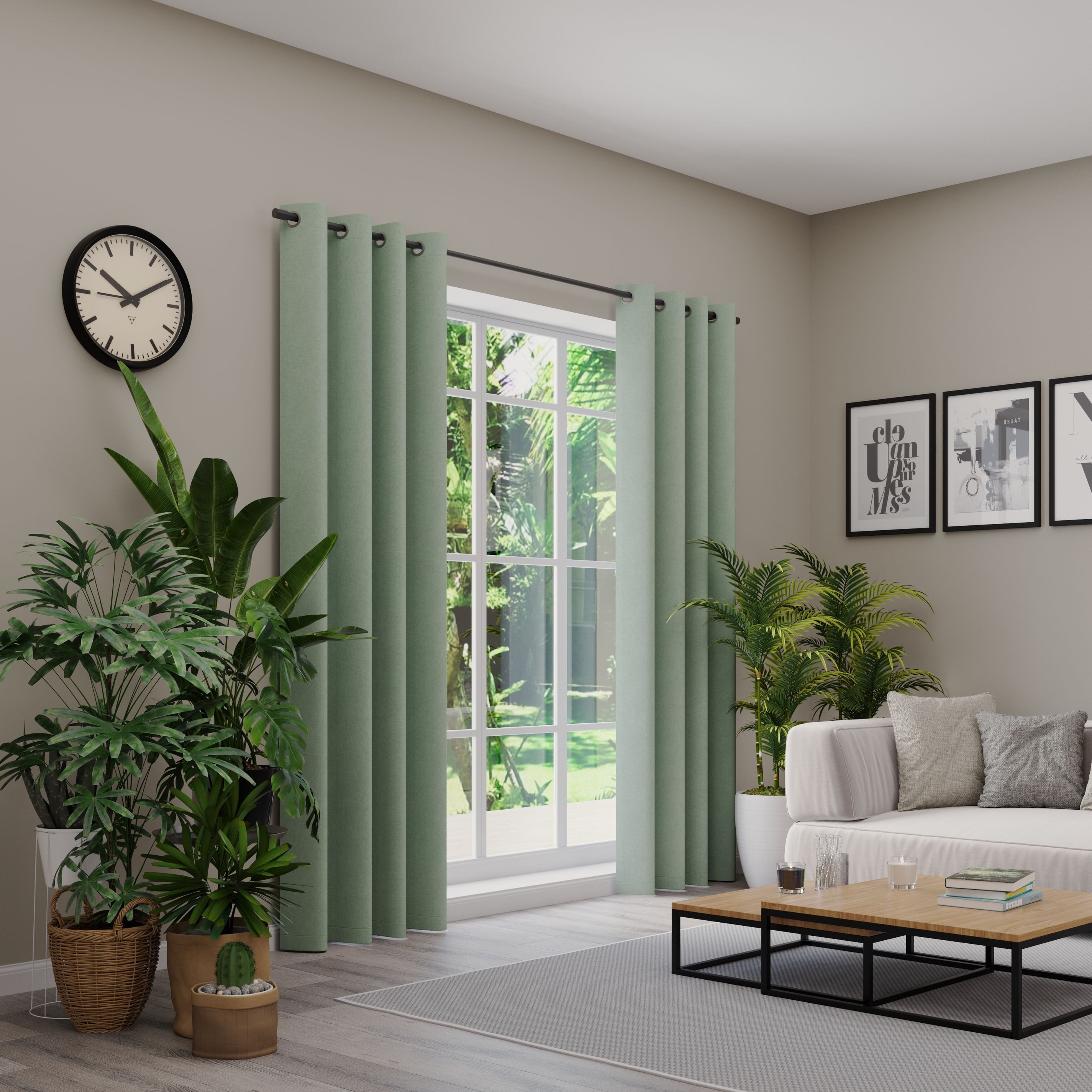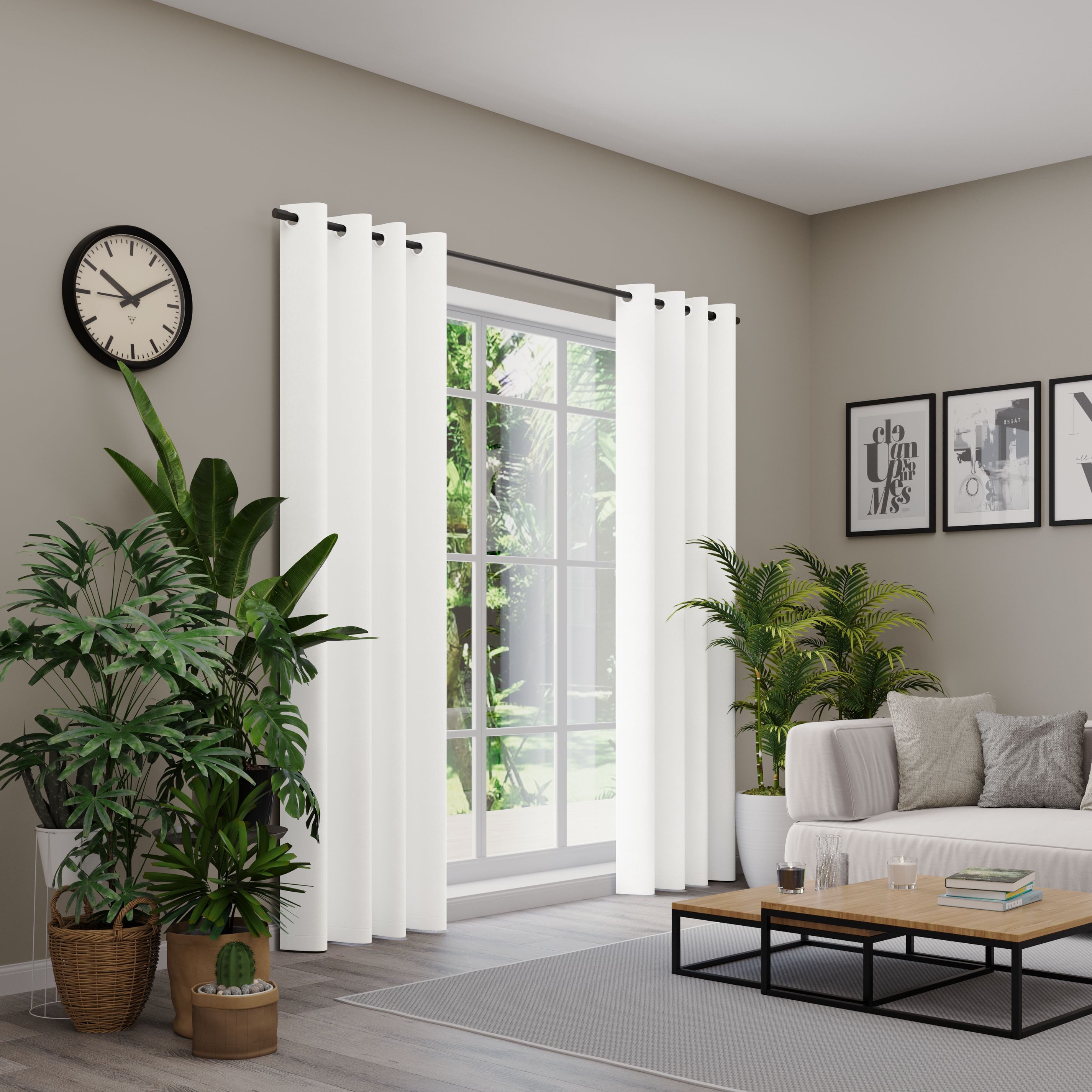 Hinweis Aufhängung | Aufhängung erfolgt mittels Ösen (Durchmesser ca. 35 mm) an der Gardinenstange. |