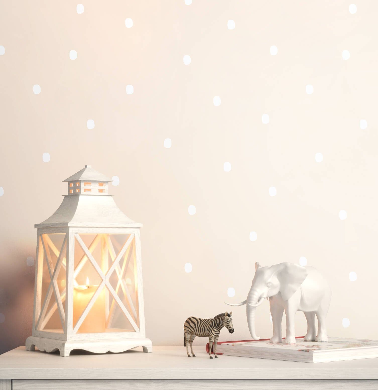 Oberflächenstruktur | Beige Tapete Kinder Punkte - Kindertapete Babytapete Weiß Grafisch Geometrisch Gepunktet für Babyzimmer Kinderzimmer Jugendzimmer |