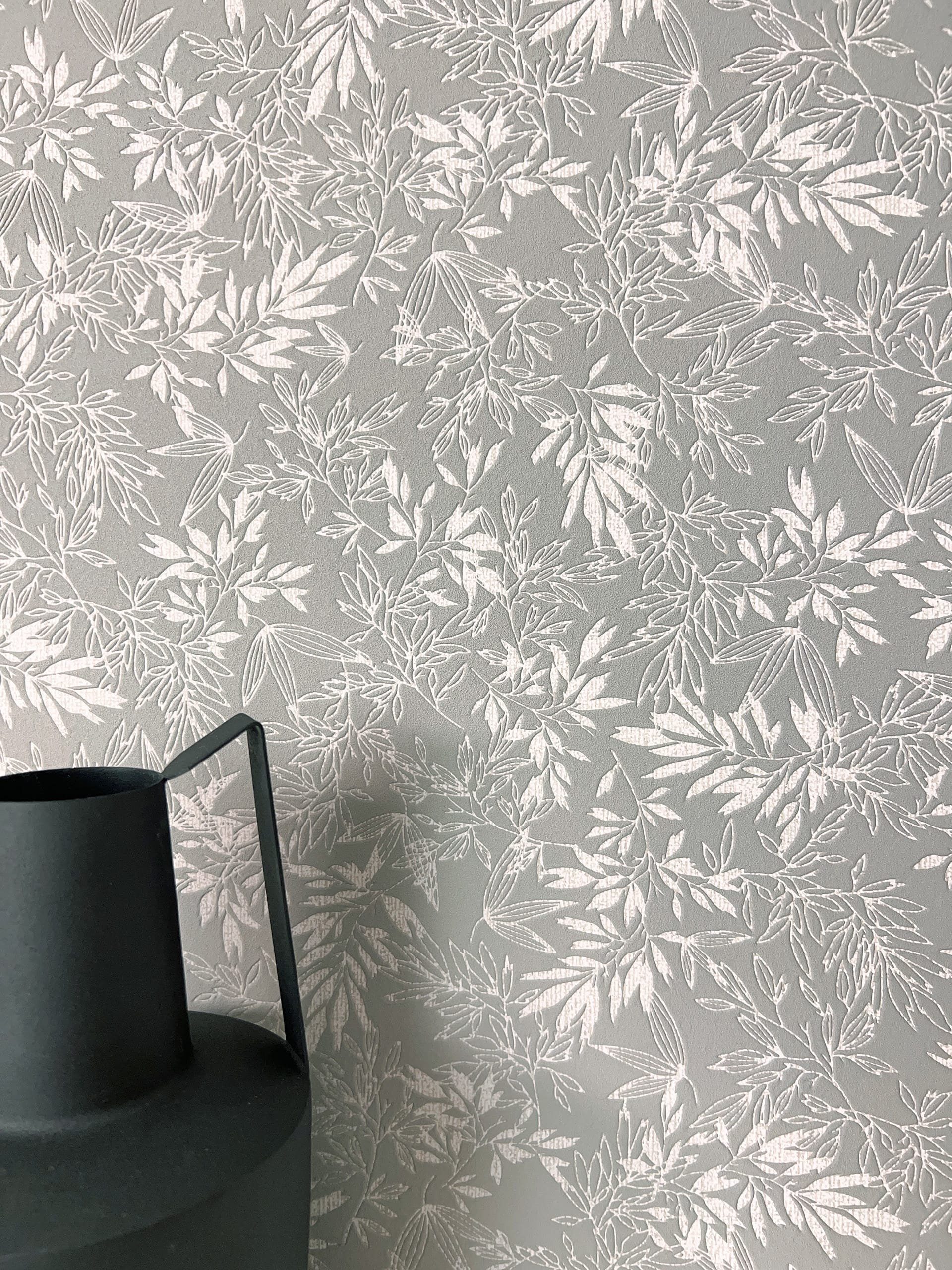 Oberflächenstruktur | Grau Tapete Floral Blätter - Blumentapete Blätter Hellgrau Romantisch 3D Optik Blumen Äste für Schlafzimmer Wohnzimmer Küche |