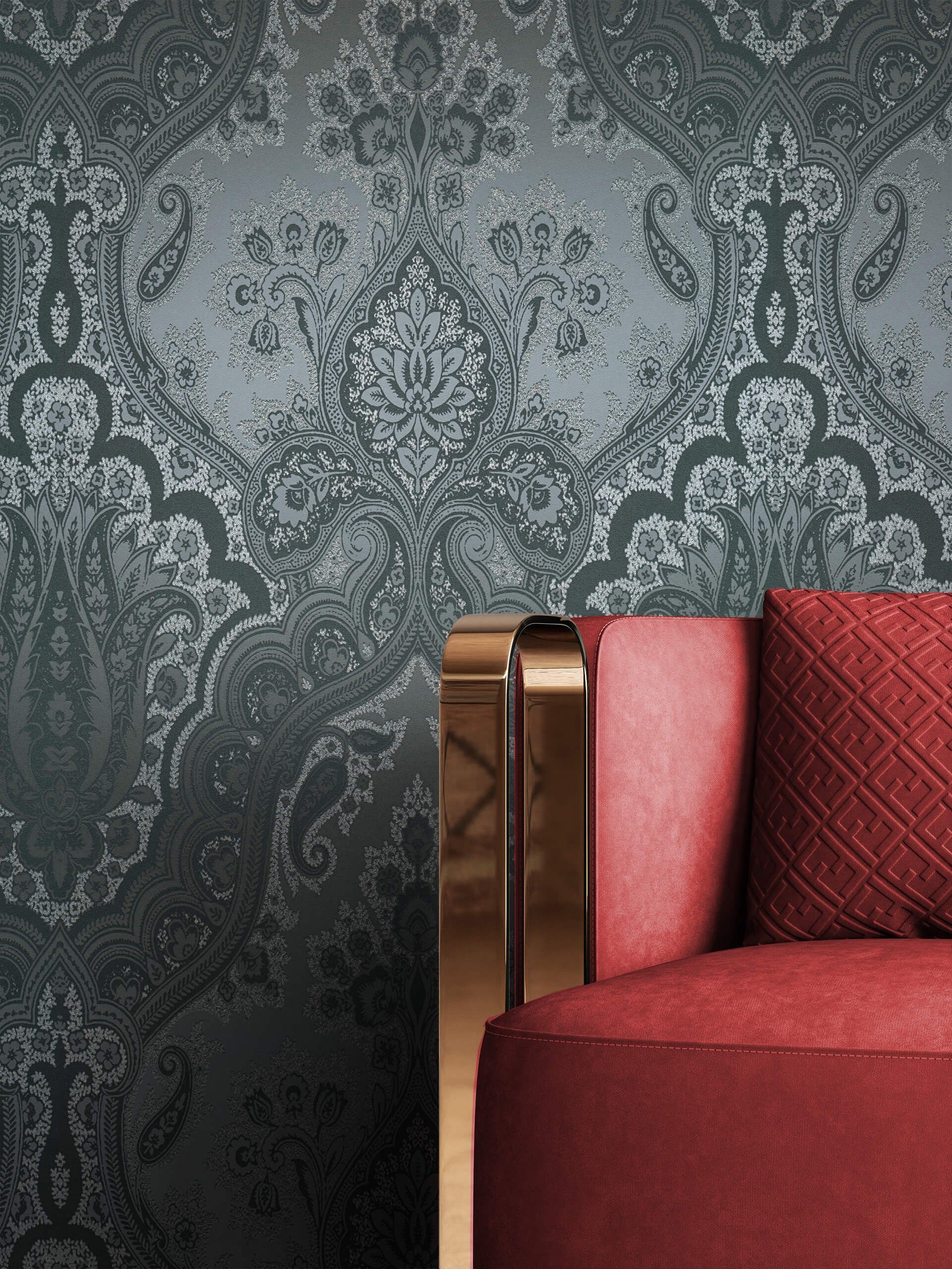 Oberflächenstruktur | Grau Tapete Uni Einfarbig - Unitapete Modern Klassik Textil Struktur für Wohnzimmer Schlafzimmer Flur |