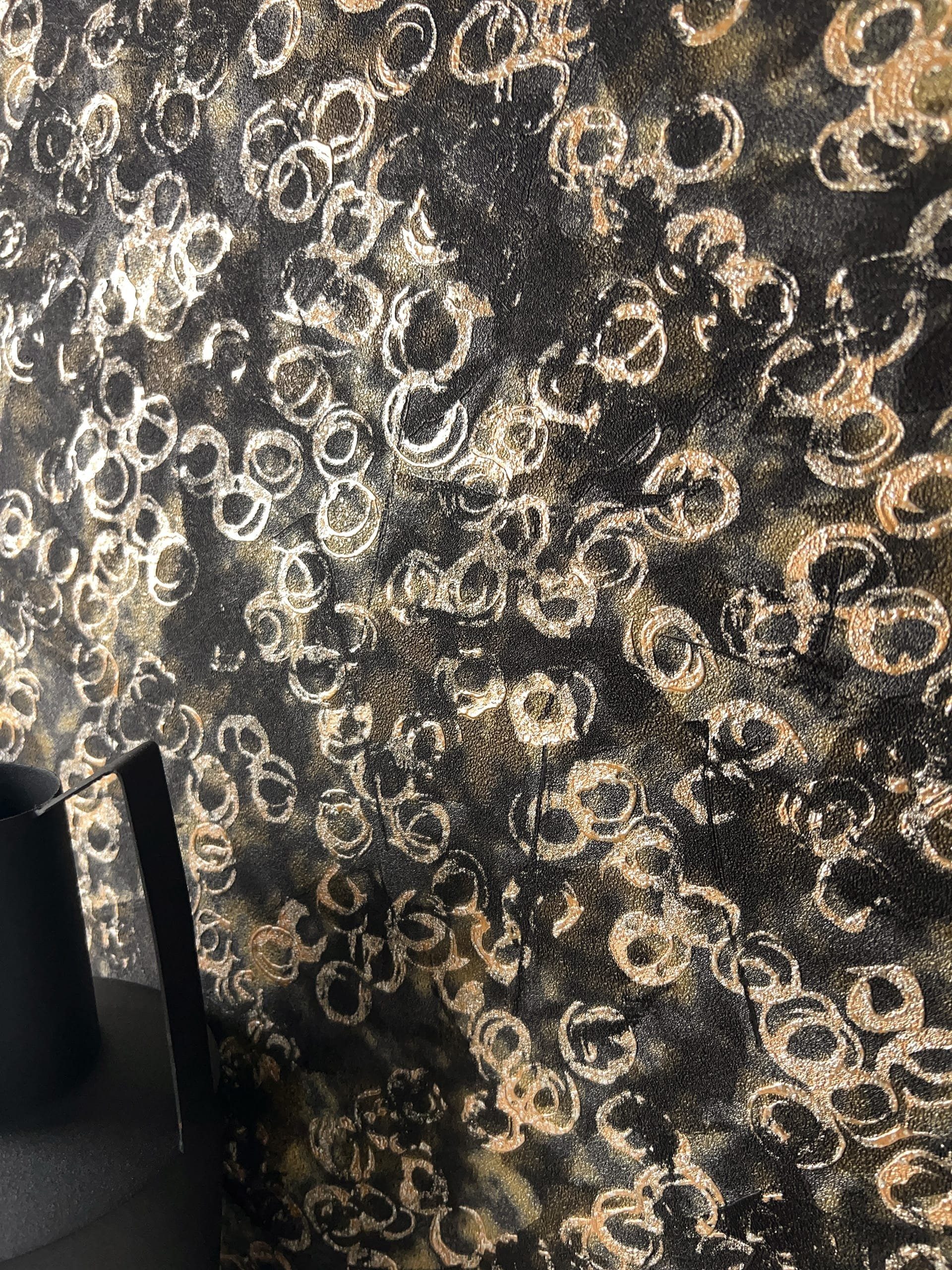 Oberflächenstruktur | Schwarz Tapete Modern Kreise - Kreistapete Punkttapete Gold Grau 3D Optik Industrial Punkte Dots für Wohnzimmer Schlafzimmer Küche |