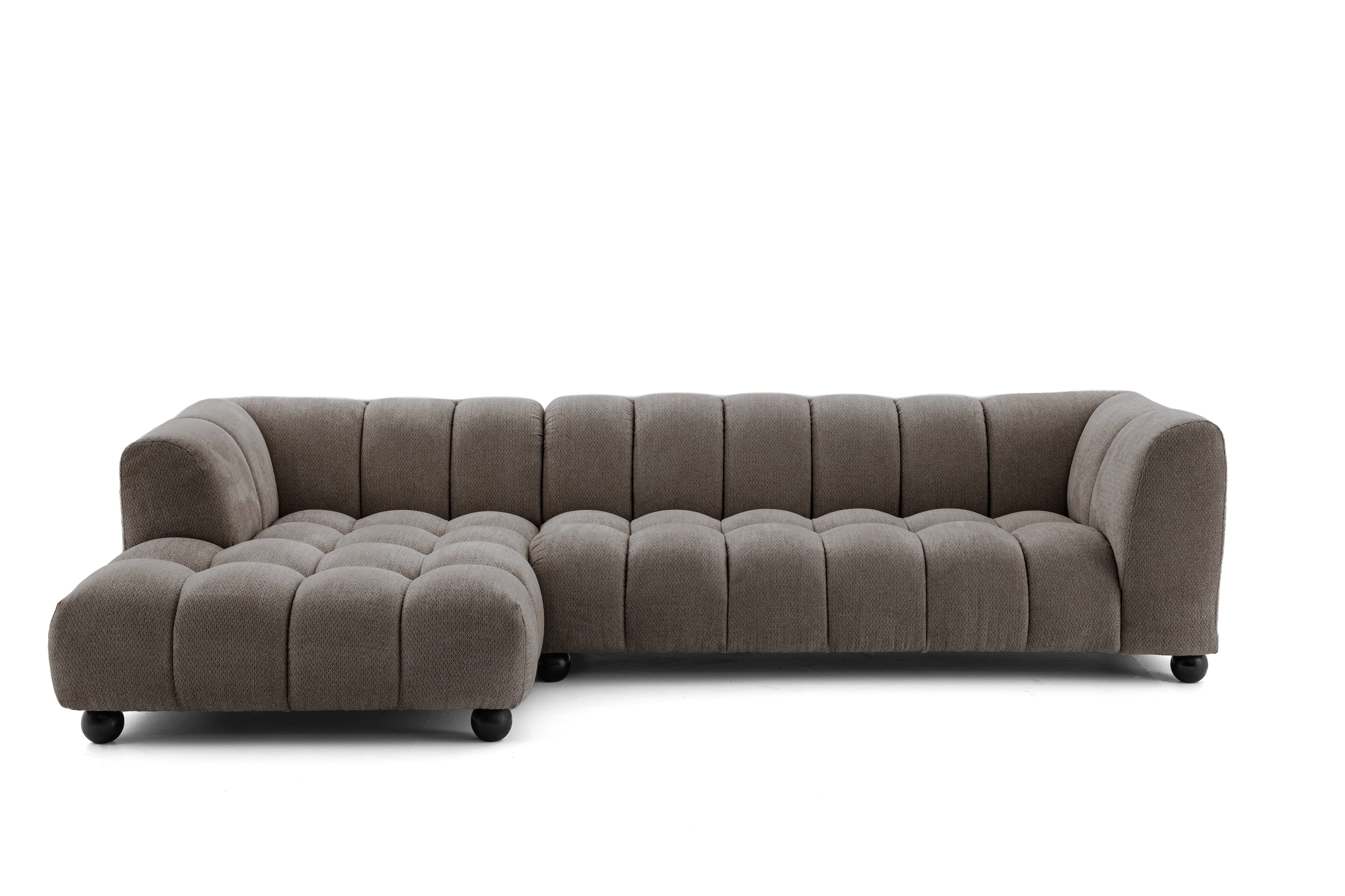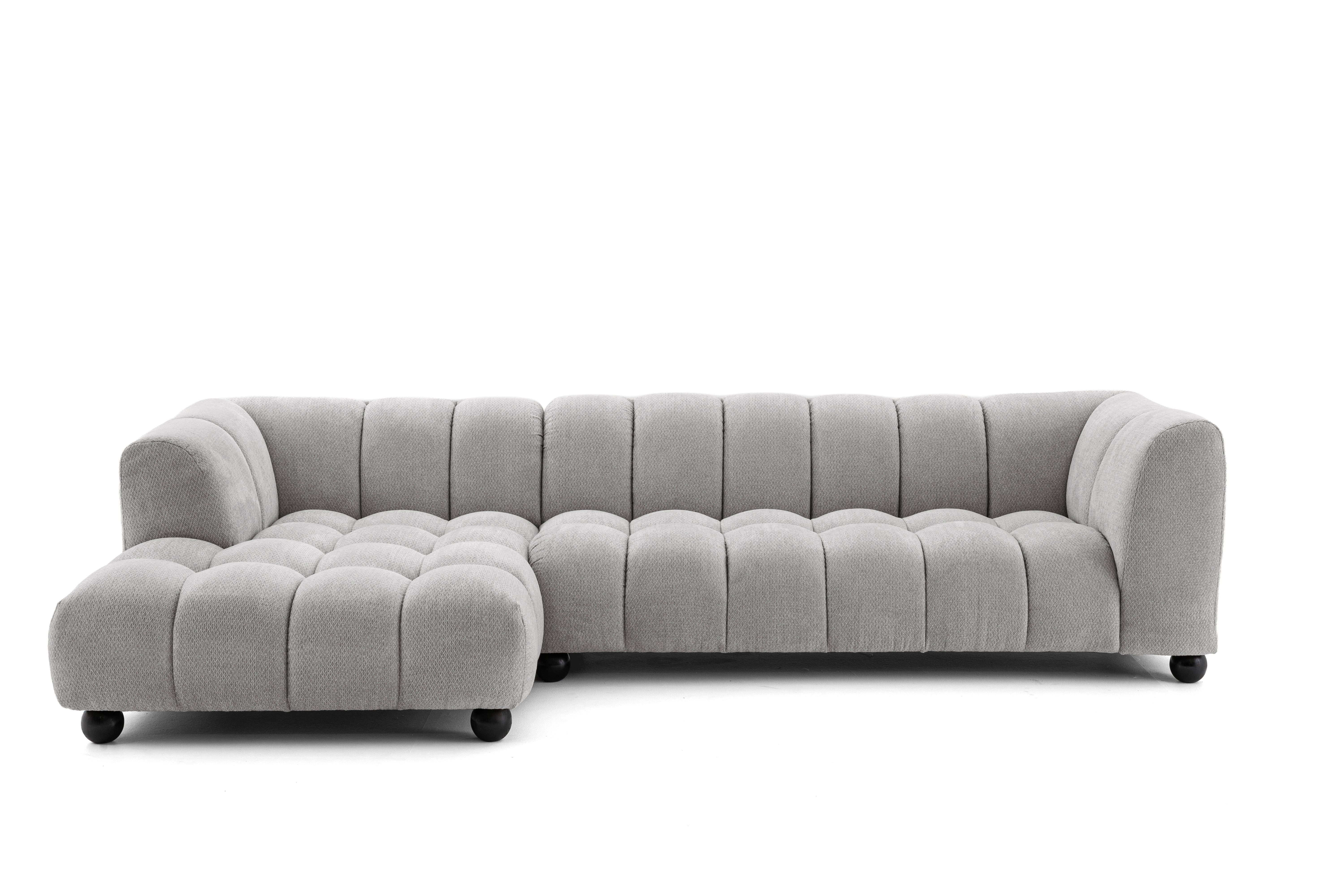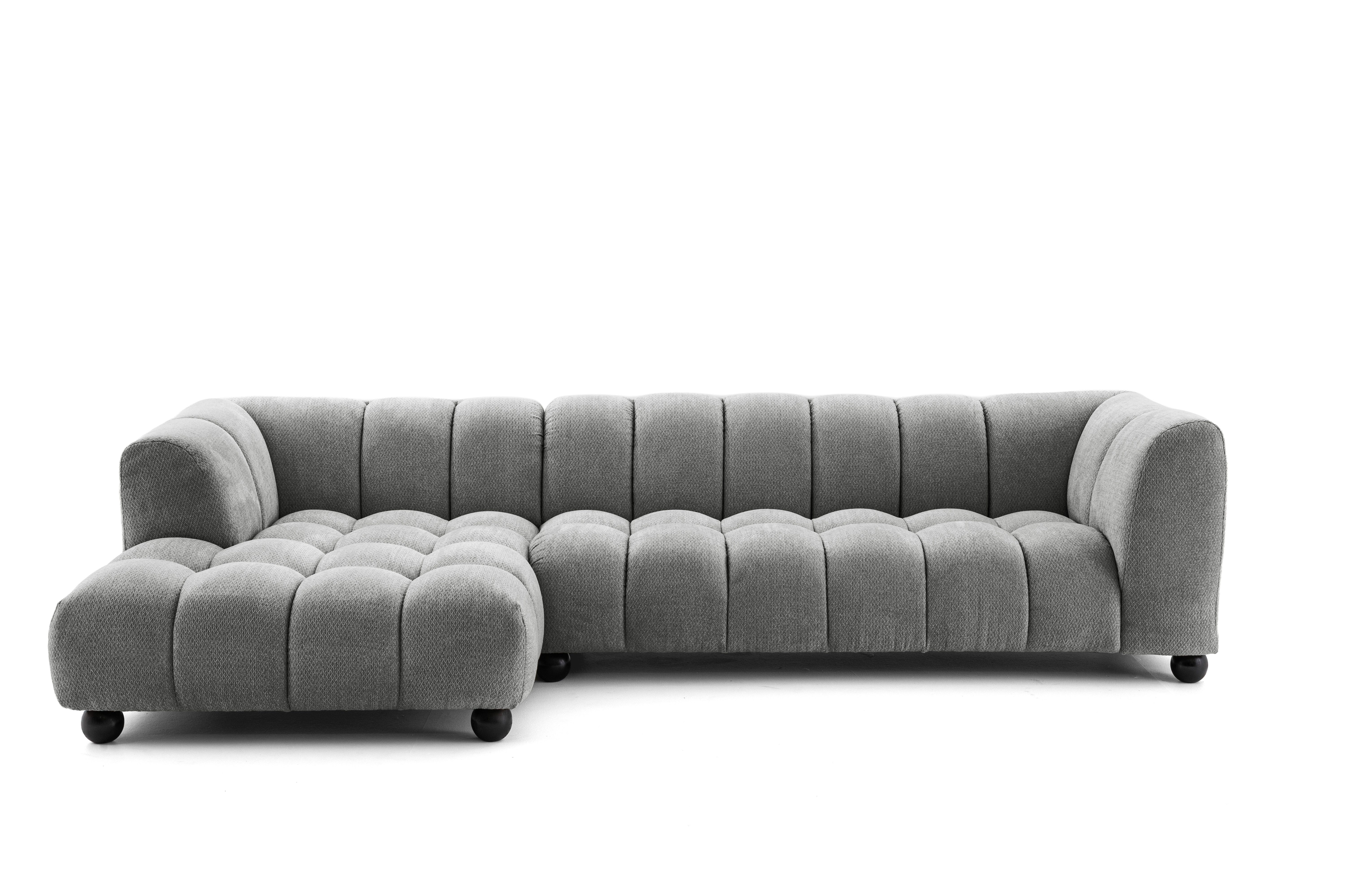 Das Ecksofa Retro Bliss ist ein einzigartiges Möbelstück, das moderne Formen mit klassischem Charme verbindet. Die sanft gerundeten Linien, die markanten Nähte und die Polsterung aus dem stilvollen Retro Bliss-Stoff sorgen dafür, dass das Ecksofa sowohl in elegante als auch in legerere Einrichtungen passt. Die bequeme Sitzfläche und die entsprechend geformten Rückenlehnen sorgen für maximalen Komfort beim täglichen Faulenzen. Es ist die ideale Wahl für alle, die zeitloses Design, Qualität und Komfort zu schätzen wissen..