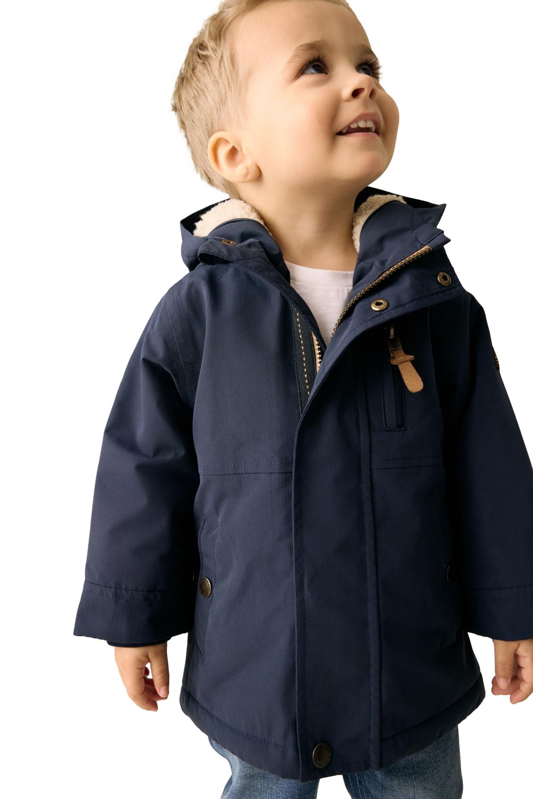 Materialzusammensetzung | Oberstoff: 100% Polyester (recycelt). Futter: 100% Polyester (recycelt). Manschetten: 97% Polyester (recycelt), 3% Elasthan |