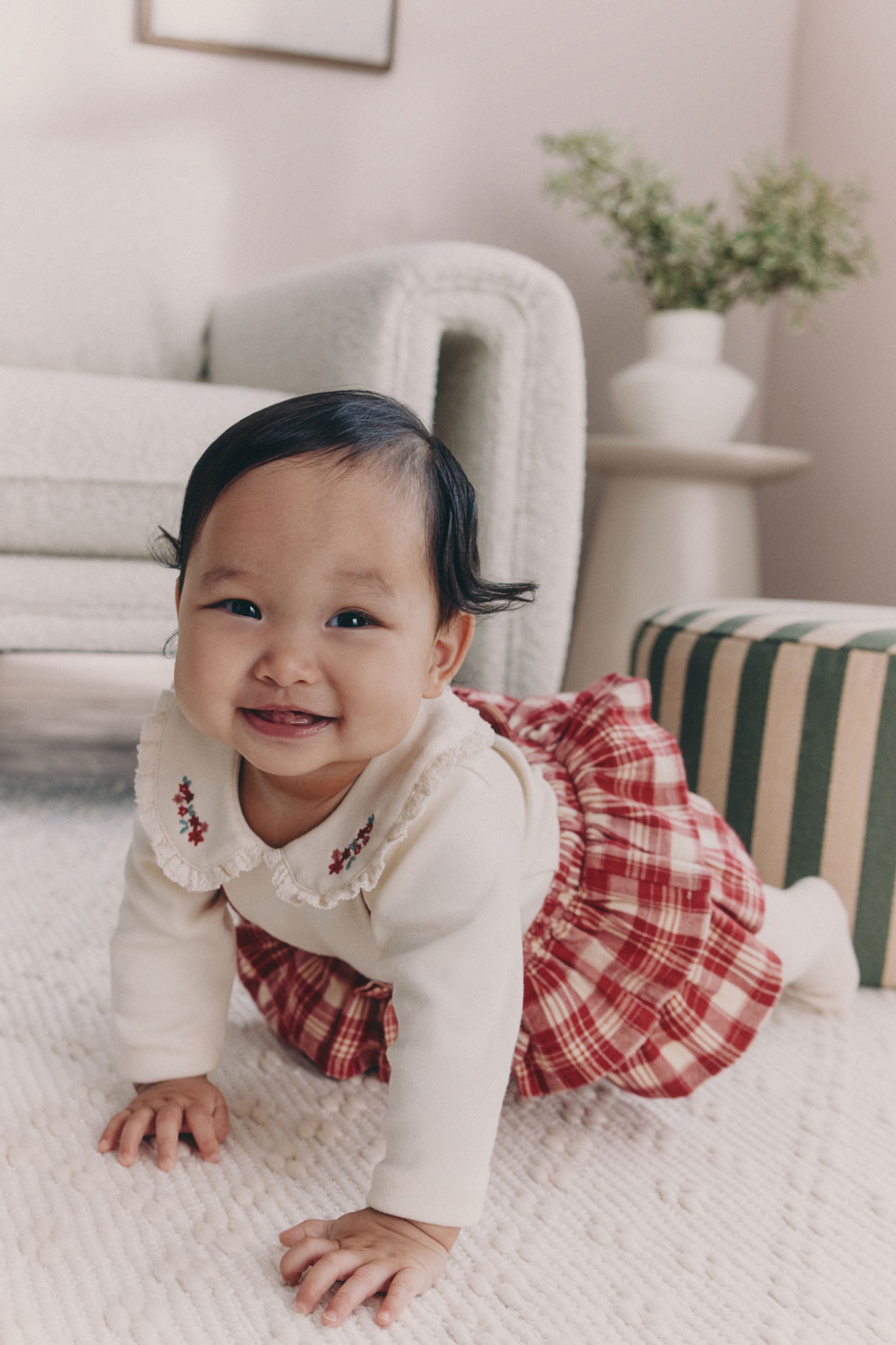 Materialzusammensetzung | Latzhose: 100 % Baumwolle. Strumpfhose: 73 % Baumwolle, 24 % Polyamid, 3 % Elasthan. Bodysuit: 100 % Baumwolle. |