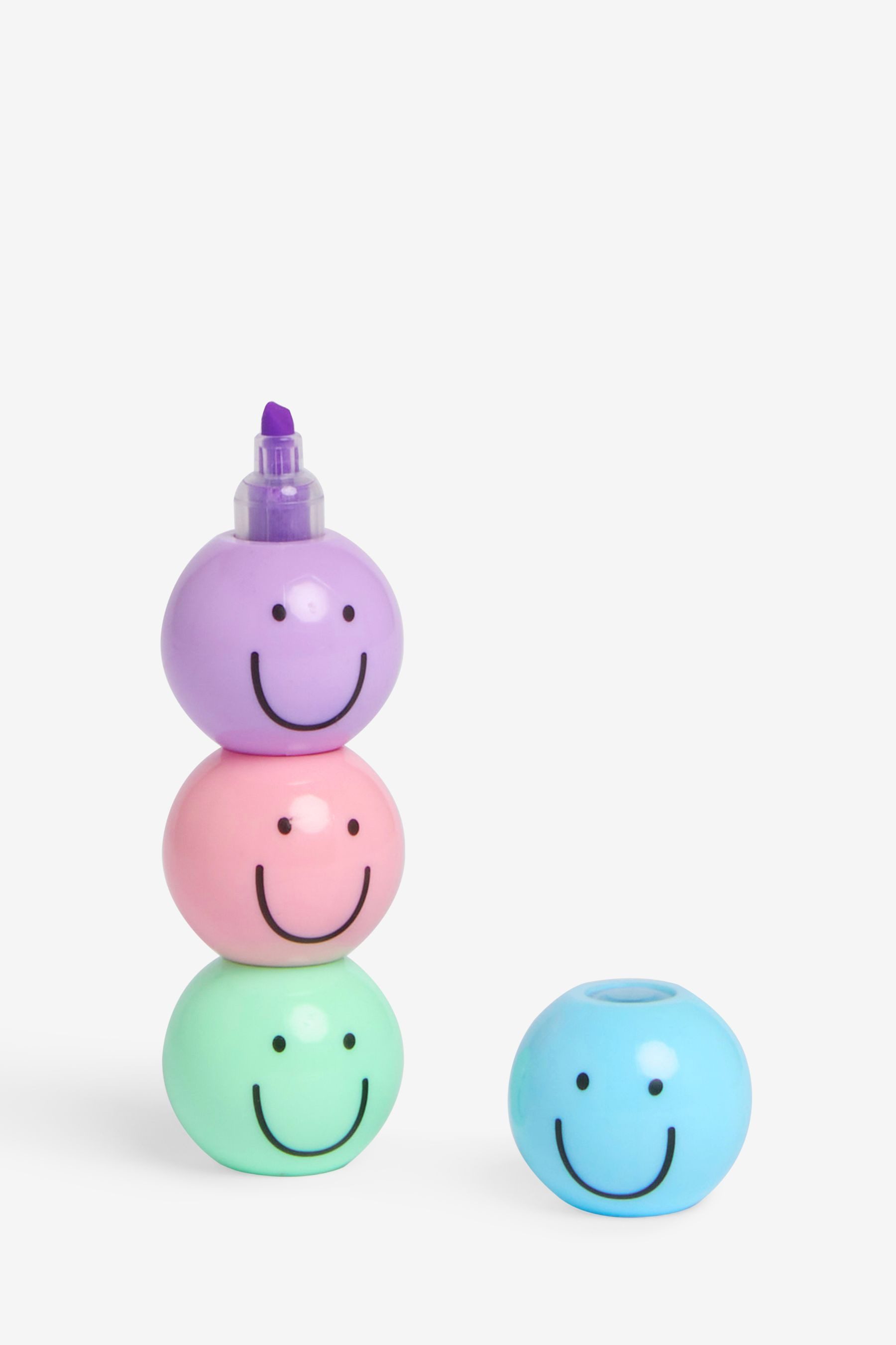 Ab sofort zaubern Ihre Büromaterialien Ihnen mit unserem stapelbaren Smiley-Textmarkern ein Lächeln aufs Gesicht. Der lustige Stapelstift muss immer wieder neu zusammengesetzt werden, um eine andere der vier fröhlichen Farbe auszuwählen.