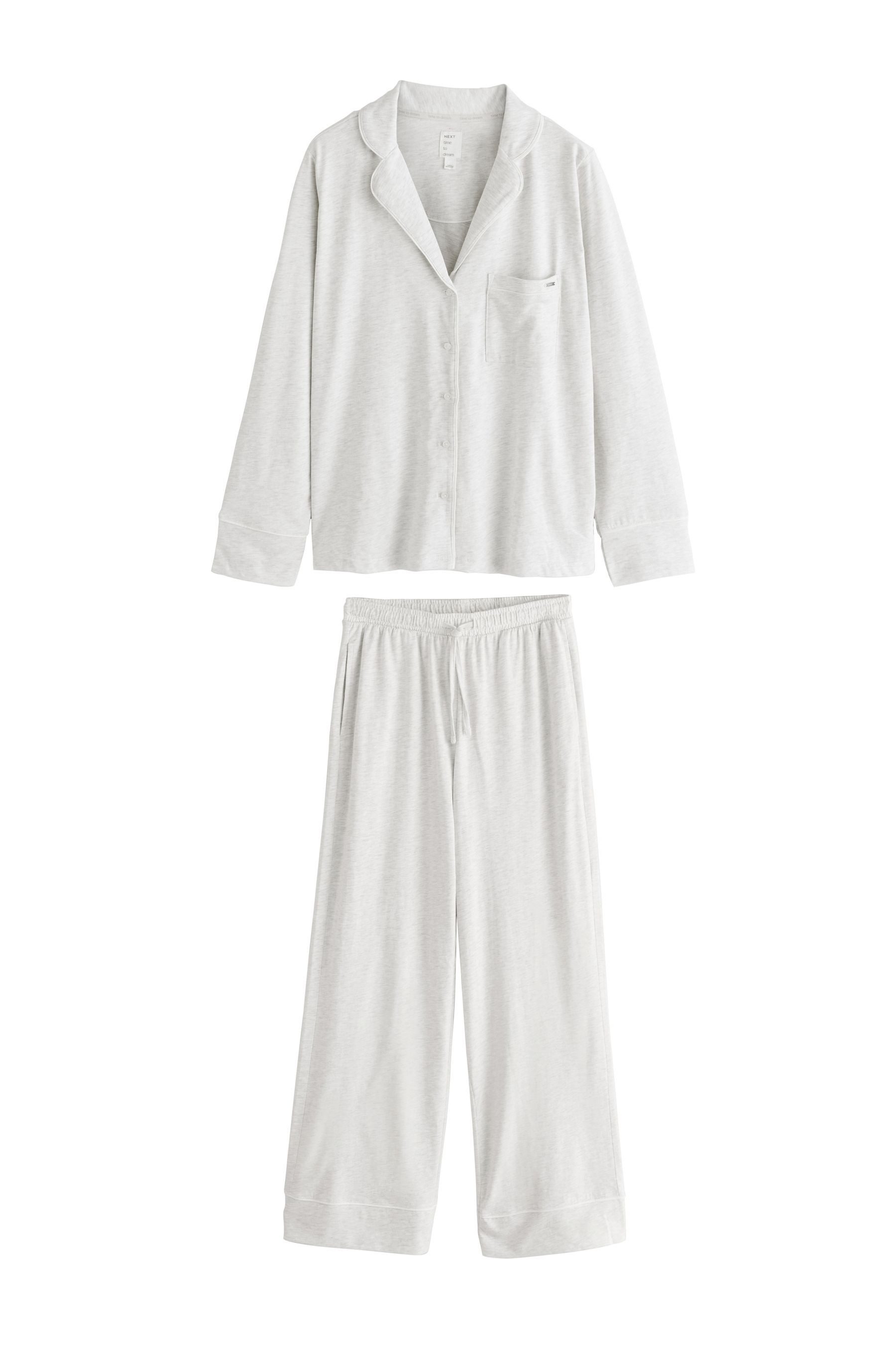 Materialzusammensetzung | Schlafanzugoberteil: 99 % Baumwolle, 1 % Viskose. Schlafanzughose: 99 % Baumwolle, 1 % Viskose. |