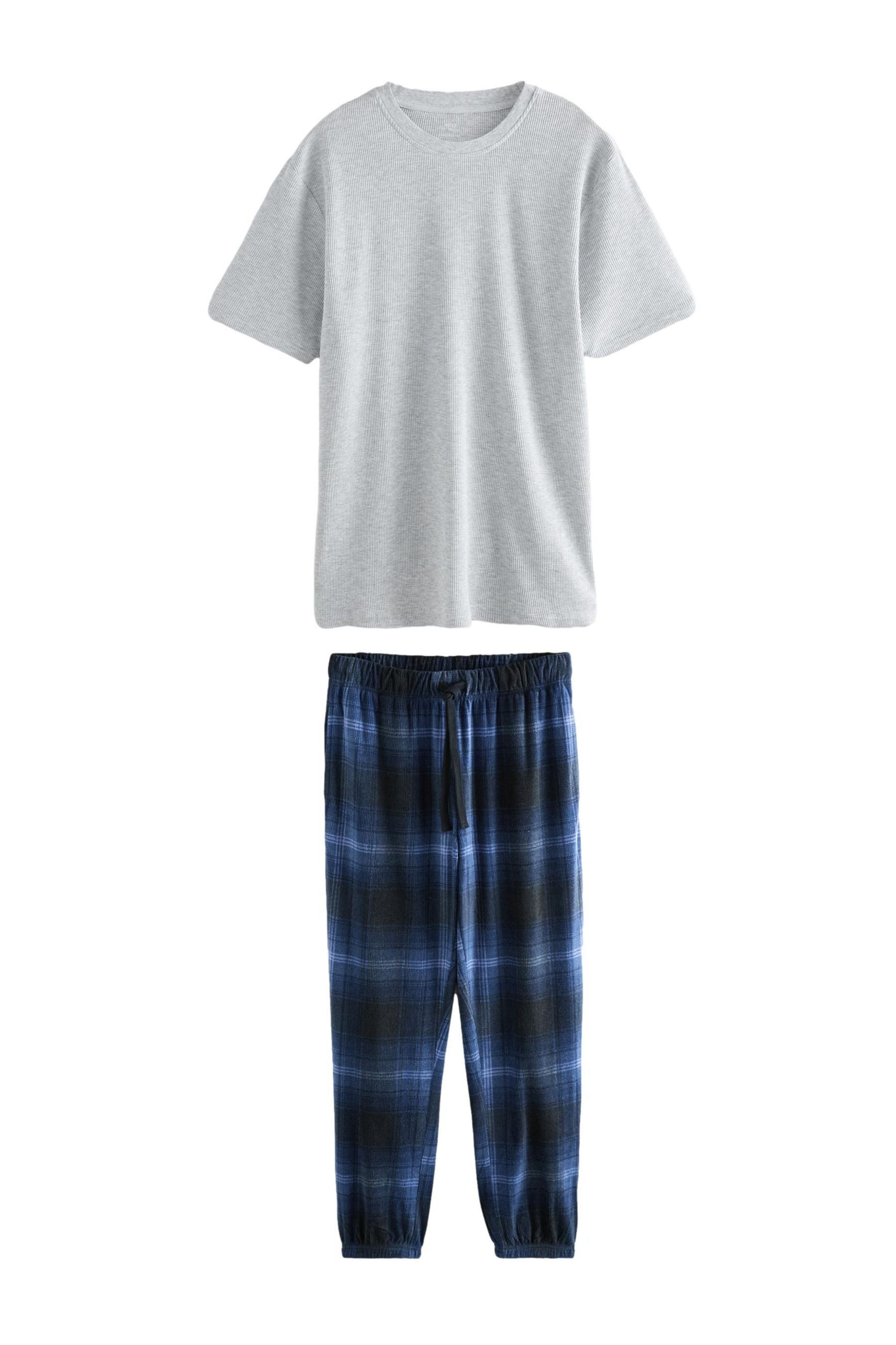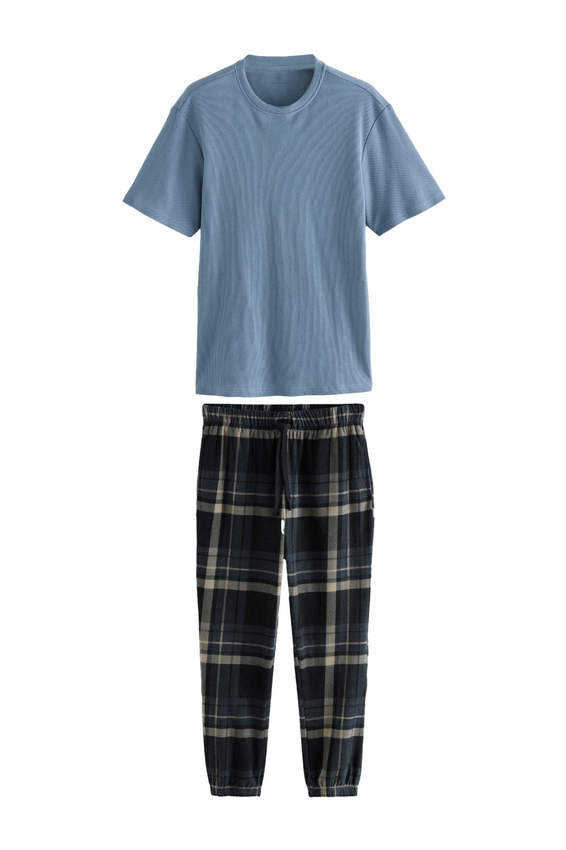 Materialzusammensetzung | Schlafanzugoberteil: 60 % Baumwolle, 40 % Polyester (recycelt). Schlafanzughose: 100 % Polyester (recycelt). |