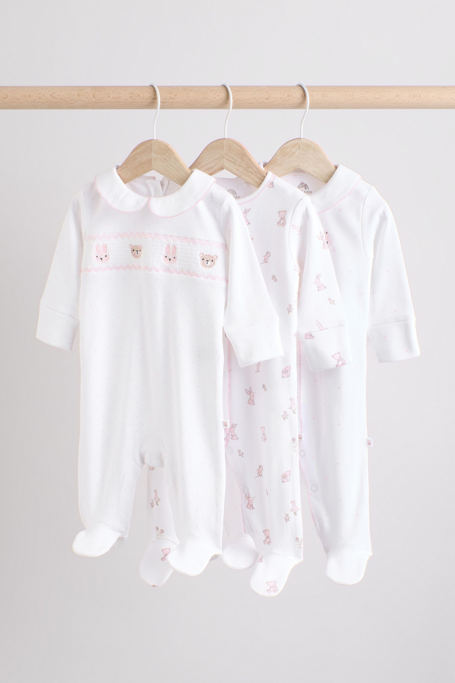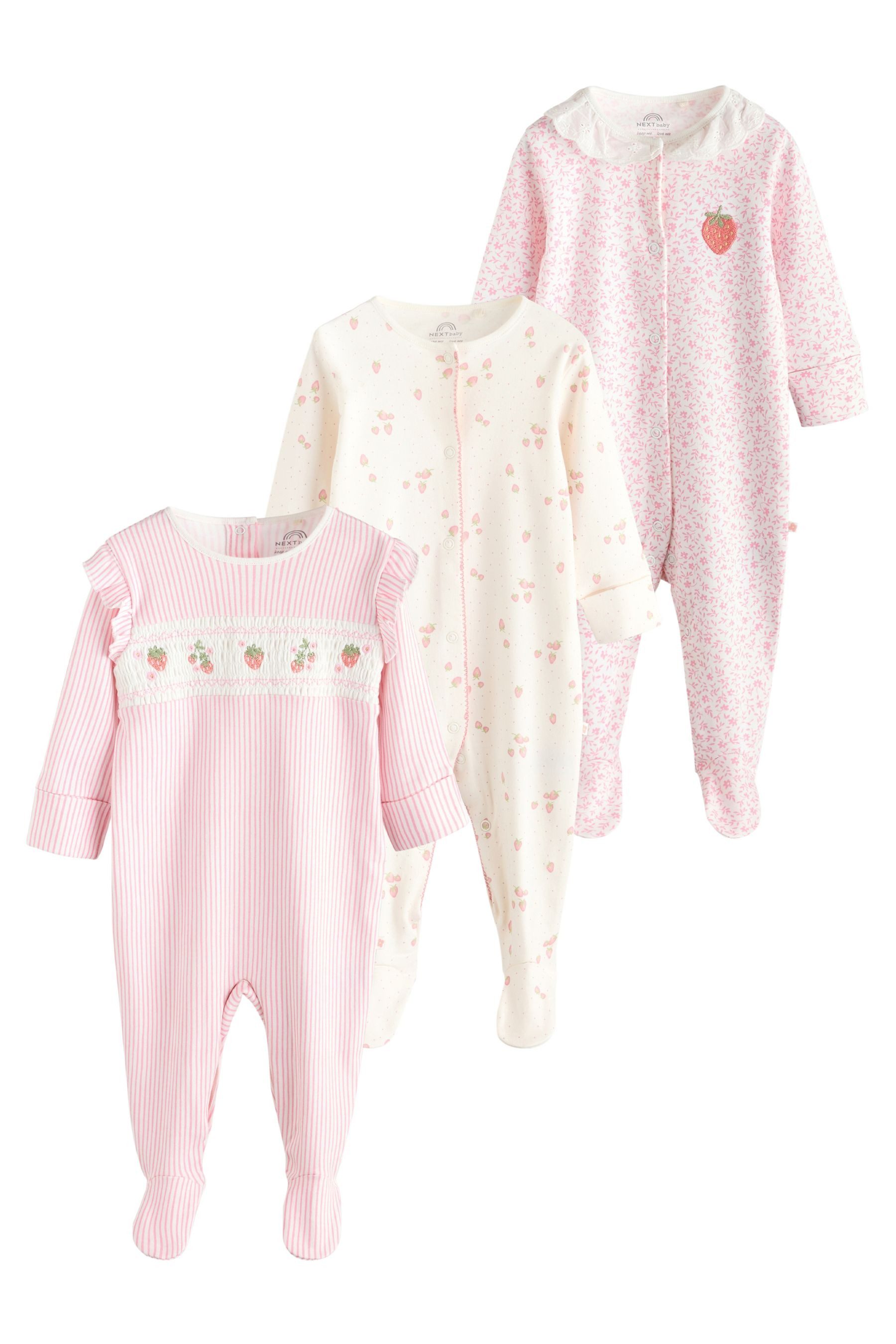 Next Schlafoverall Schlafanzüge 100 % Baumwolle mit Kragen, 3 Stk. (3-tlg)