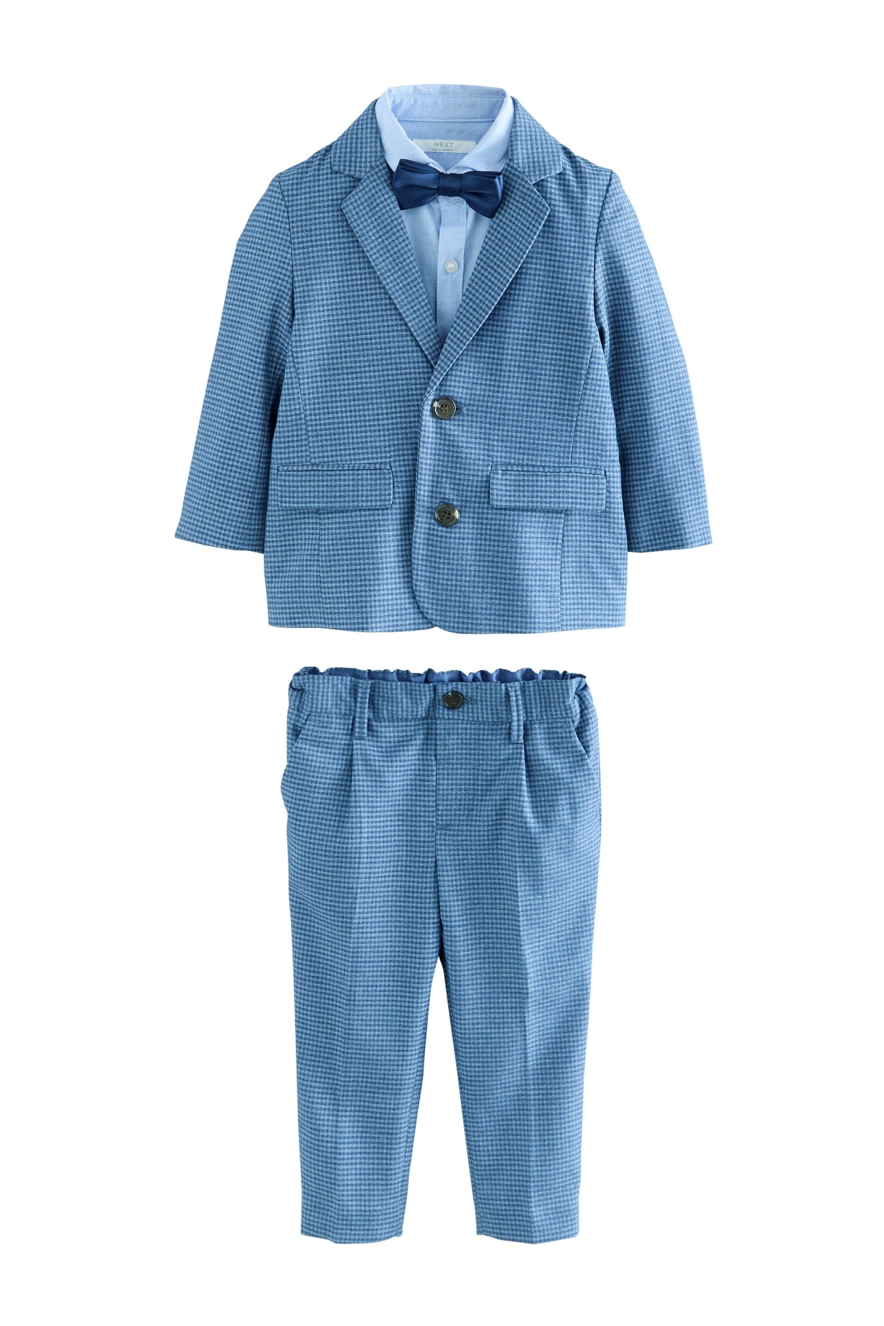 Materialzusammensetzung | Jacke, Hauptmaterial: 77 % Polyester, 22 % Viskose, 1 % Elasthan. Futter: 100 % Polyester. Hemd, Hauptmaterial: 100 % Baumwolle. Hose, Hauptmaterial: 77 % Polyester, 22 % Viskose, 1 % Elasthan. Fliege, Hauptmaterial: 100 % Polyester. |
