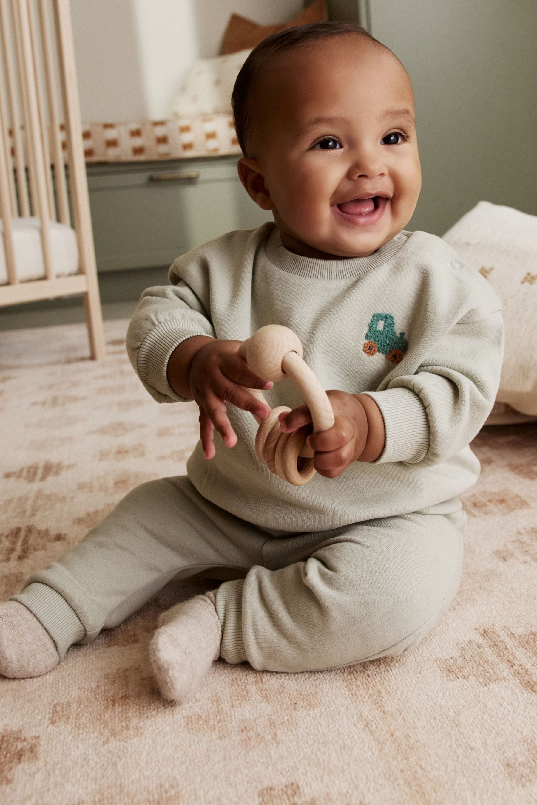 Materialzusammensetzung | Sweatshirt: 90% Baumwolle, 10% Polyester (recycelt)/ Jogginghose: 90% Baumwolle, 10% Polyester (recycelt) |