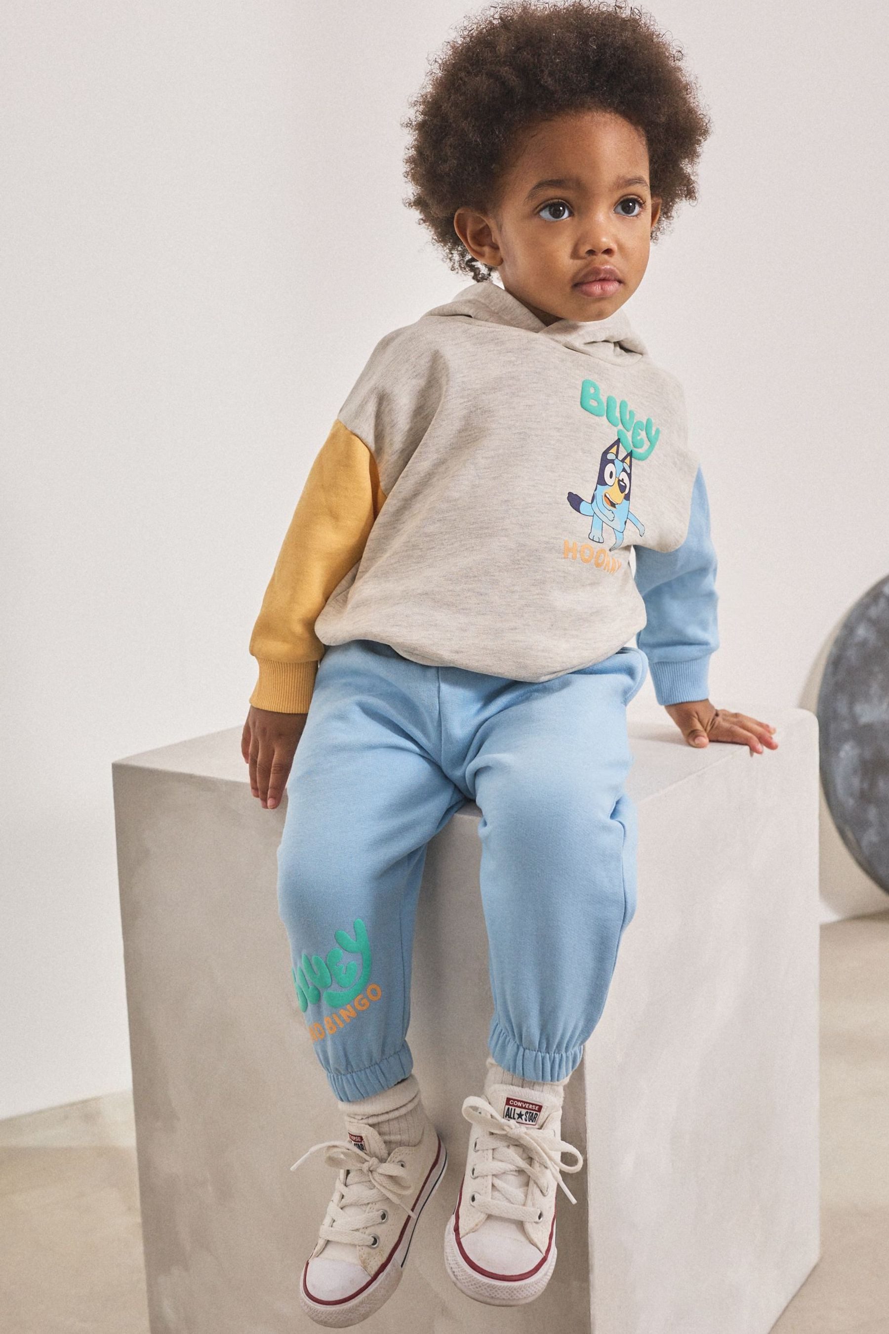 Materialzusammensetzung | Pullover: 79 % Baumwolle, 20 % Polyester (recycelt), 1 % Viskose. Jogginghose: 80 % Baumwolle, 20 % Polyester (recycelt). |