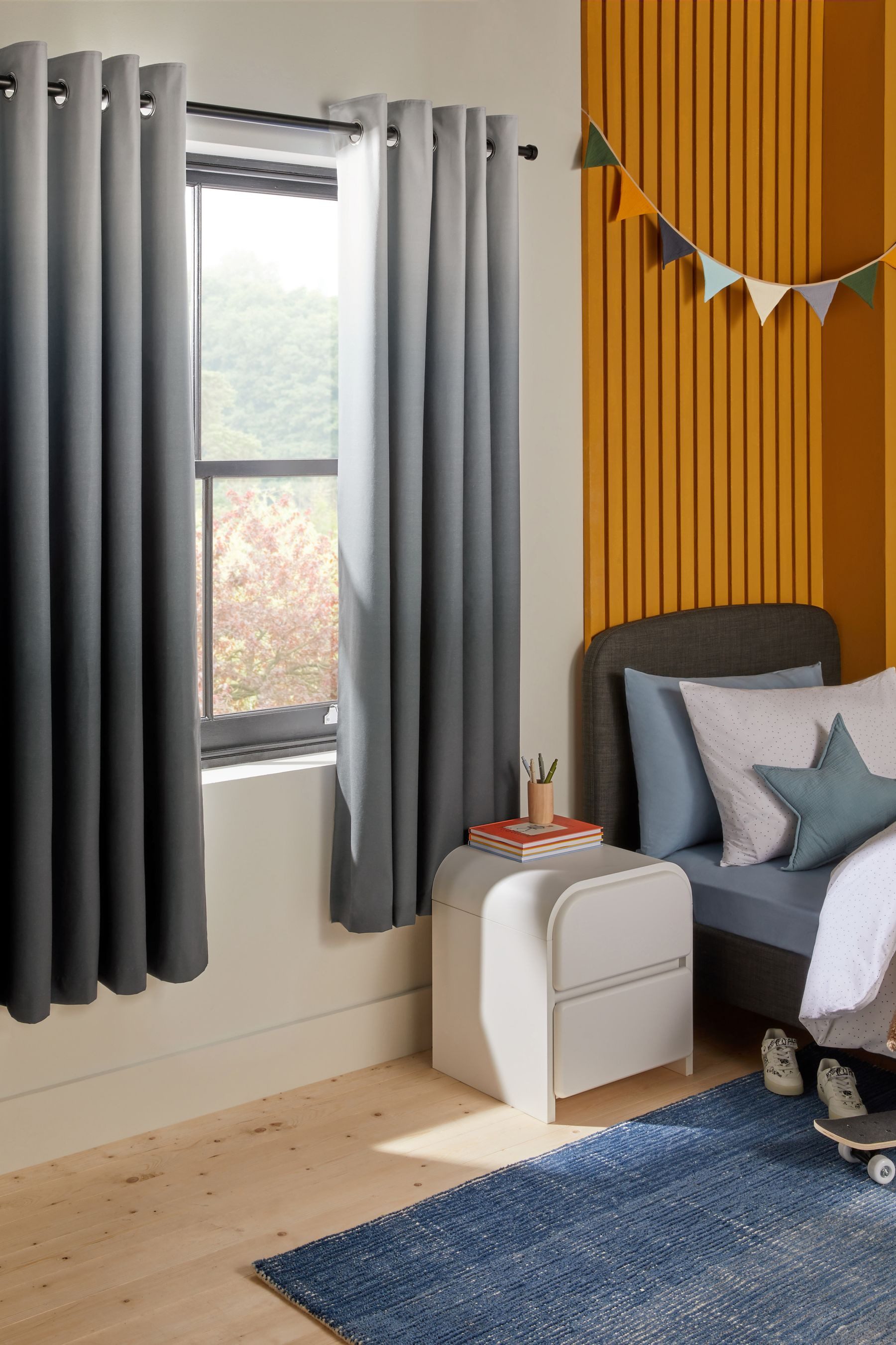 Ziehen Sie die Vorhänge zu, wenn Sie Ihren Raum verdunkeln möchten. Dank ihrer lichtundurchlässigen Eigenschaften halten diese Vorhänge unerwünschtes Licht von außen ab und eignen sich daher hervorragend für Kinderzimmer, für Menschen mit leichtem Schlaf oder wenn Sie sich am Wochenende ausschlafen möchten.