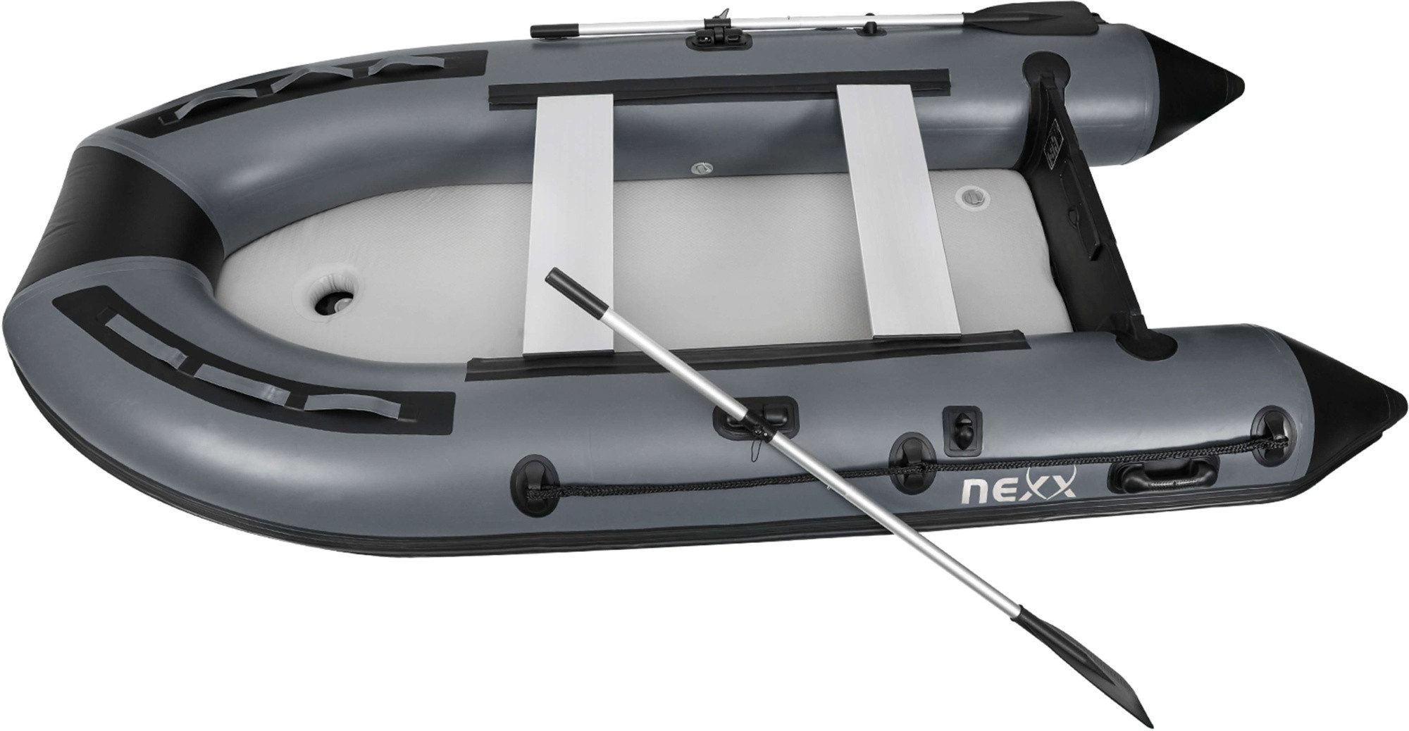 Durch Tragegriffe an Bug und Heck kann das Schlauchboot auch im aufgebauten Zustand ganz leicht transportiert werden. Mit einem Eigengewicht von ca. 36 kg ist das NEXX 330 Schlauchboot eines der leichtesten seiner Klasse und kann mit herausragender Stabilität punkten.
