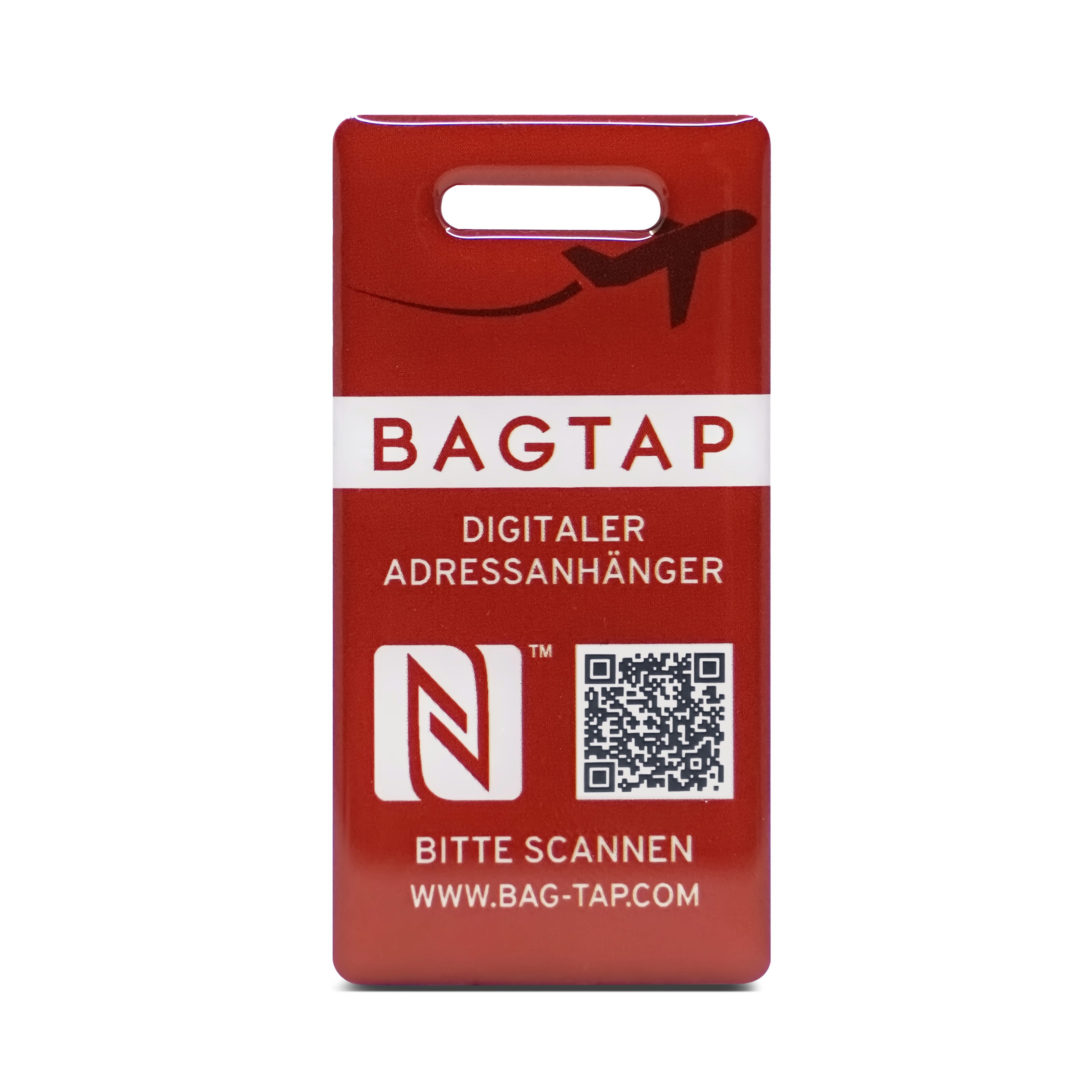 Mit dem BAGTAP Gepäckanhänger behalten Sie Ihre Koffer, Taschen und Rucksäcke immer im Blick. Dank modernster NFC- und QR-Code-Technologie sorgt BAGTAP dafür, dass Ihr Gepäck im Verlustfall einfacher zu Ihnen zurückfindet. Intelligente Technologie für maximale Sicherheit: Anders als herkömmliche Gepäckanhänger, bei denen Ihre Adresse mit der Zeit unleserlich wird oder ungeschützt sichtbar bleibt, setzt BAGTAP auf ein digitales Kontaktprofil. Hier können Sie nicht nur Ihre Kontaktdaten, sondern auch Informationen zu Ihrem Reiseweg und eine Beschreibung Ihres Gepäckstücks hinterlegen. Der große Vorteil: Ihre Daten lassen sich jederzeit und von überall aktualisieren. Einfache Nutzung – keine App erforderlich: BAGTAP funktioniert mit jedem NFC-fähigen Smartphone – ganz ohne zusätzliche App! Ein einfacher Scan mit dem Smartphone genügt, um das hinterlegte Kontaktprofil aufzurufen. Für Geräte ohne NFC gibt es zusätzlich einen QR-Code. Je nach Spracheinstellung des Smartphones wird das Profil automatisch auf Deutsch oder Englisch angezeigt. So ist Ihr Gepäck weltweit bestmöglich geschützt. Privatsphäre nach Ihren Wünschen: Sie können Ihre Kontaktdaten jederzeit ein- oder ausblenden, sodass sie erst im Verlustfall sichtbar werden. Sobald jemand Ihr Gepäck findet, kann der Finder den BAGTAP mit dem Smartphone scannen und Sie über den integrierten Kontaktbutton benachrichtigen, inklusive des aktuellen Standort Ihres Gepäcks. Robust, wetterfest und mühelos zu aktivieren: BAGTAP ist wasserfest und robust, sodass er jedem Wetter standhält. Die Einrichtung erfolgt in wenigen, einfachen Schritten: 1. BAGTAP mit einem Scan aktivieren & registrieren 2. Kontaktprofil ausfüllen 3. BAGTAP mit dem mitgelieferten Metallring am Gepäck befestigen