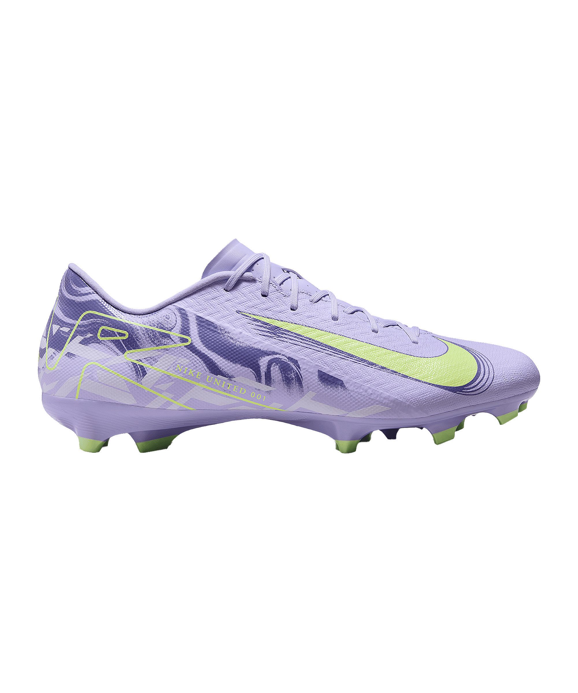 Der flach geschnittene Nike Air Zoom Mercurial Vapor XVI Academy FG/MG ist ein leichter und schneller Fuszlig;ballschuh fuuml;r Mauml;nner und Frauen. Die Nike Fuszlig;ballschuhe mit Hybidsohle sind geeignet fuuml;r festen Naturrasen, Kunstrasen und Hartplatz. Das Midrange-Modell gehouml;rt zum Nike United Pack mit schouml;nem pastellweichem Purple Agate und Azenten plus Swoosh in Barely Volt. Der United Pack ist mit diesem Design und der Farbkombination speziell den weiblichen Spitzenfuszlig;ballerinnen gewidmet, die bei Nike unter Vertrag stehen. Schauen wir uns die Boots mal von oben bis unten an: