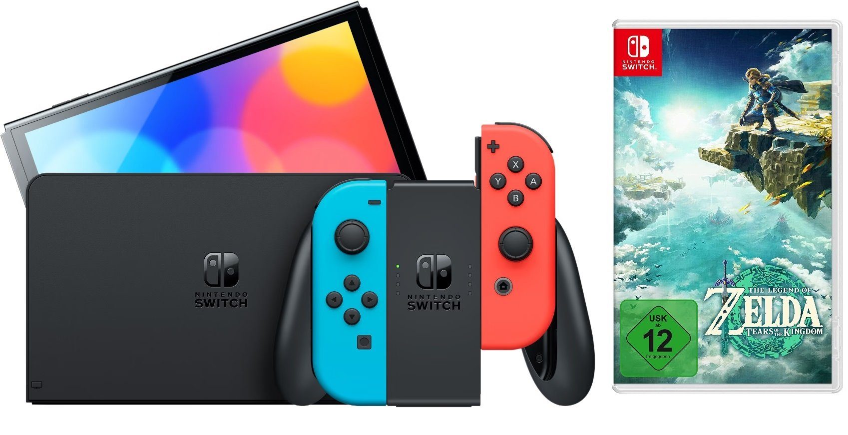 Lieferumfang | HDMI-Kabel Nintendo Switch Konsole Nintendo Switch-Netzteil Joy-Con-Handgelenksschlaufen 2x Joy-Con-Controller Nintendo Switch-Station Joy-Con-Halterung The Legend of Zelda: Tears of the Kingdom |