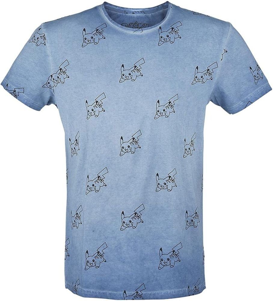 Das blaue Shirt zeigt viele Pikachus.