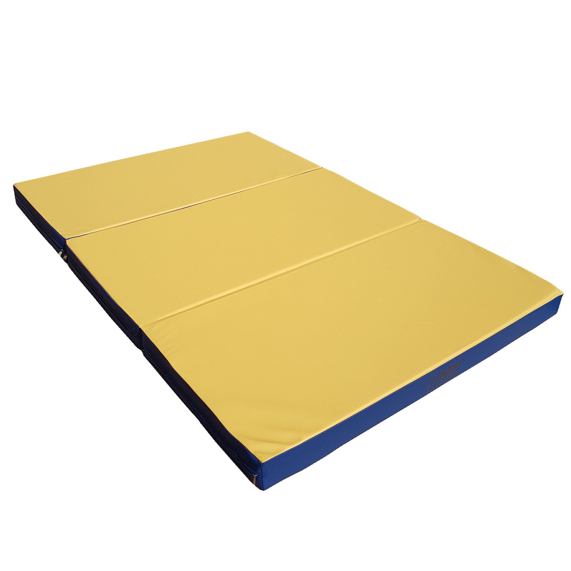 Die klappbare NiroSport Turnmatte 150 x 100 x 8 cm bietet besondere Sicherheit beim Turnen mit verschiedenen Sportgeräten. Diese Matte ist vielseitig einsetzbar: bei Bodenübungen sorgt sie für einen gepolsterten Untergrund und beim Turnen dient sie als sicherer Fallschutz. Highlights hohe Qualität und Langlebigkeit rutschfest und pflegeleicht vielseitig einsetzbar: Turnen, Fallschutz, Kampfsportarten umweltfreundlich verschiedene Farben verfügbar Mattenbezug Der Bezug dieser Turnmatte besteht aus einem hochwertigen und hautfreundlichen Kunstleder. Die robuste Oberfläche der Matte ist rutschfest, abwaschbar und speichelfest. Innenmaterial Das Innenfutter der Matte besteht aus einem hochwertigen Schaumstoff mit erhöhter Dichte. Die Verwendung dieses Schaumstoffes verleiht der Trainingsmatte Weichheit und gleichzeitig den nötigen Schutz beim Fallen. Details Material Mattenkern: Polyurethan-Schaumstoff Material Bezug: Turnmattenstoff mit Narbenstruktur Длина: 150 cm Breite: 100 cm Höhe: 8 cm Gewicht: 6 kg Wir produzieren unsere Matten in Deutschland ausschließlich aus umweltfreundlichen Materialien. NiroSport Turnmatten haben eine außerordentlich hohe Qualität und Langlebigkeit und werden deshalb in vielen deutschen und europäischen Schulen, Kindergärten und Sporteinrichtungen gerne eingesetzt. Sonderanfertigung Falls Sie eine Matte benötigen, die genau auf Ihre individuelle Bedürfnisse zugeschnitten werden soll, dann nehmen Sie einfach Kontakt mit uns auf. Die gewünschte Matte wird innerhalb von wenigen Tagen angefertigt und zugestellt. Verwendung Turnmatten finden ihre hauptsächliche Anwendung bei den Turnsportarten, wie Geräteturnen, dem Bodenturnen oder auch Kinderturnen aber auch bei Kampfsportarten wie Judo oder Ringen. Sie dienen aufgrund ihrer speziellen Eigenschaften dazu, die Landung des Sportlers nach dem Abheben vom Boden so weich und gelenkschonend wie möglich zu gestalten, um so Verletzungen vorzubeugen. Gerade im Schul- und Vereinssport ist daher die Wahl der richtigen und qualitativ hochwertigen Turnmatte absolut notwendig. Turnmatten sind kein sportlichen Accessoires, sondern ein wichtiges Turngerät für den richtigen und damit gesunden Bewegungsablauf bei allen sportlichen Aktivitäten, die im Liegen oder zum Teil auch Sitzen ausgeübt werden.