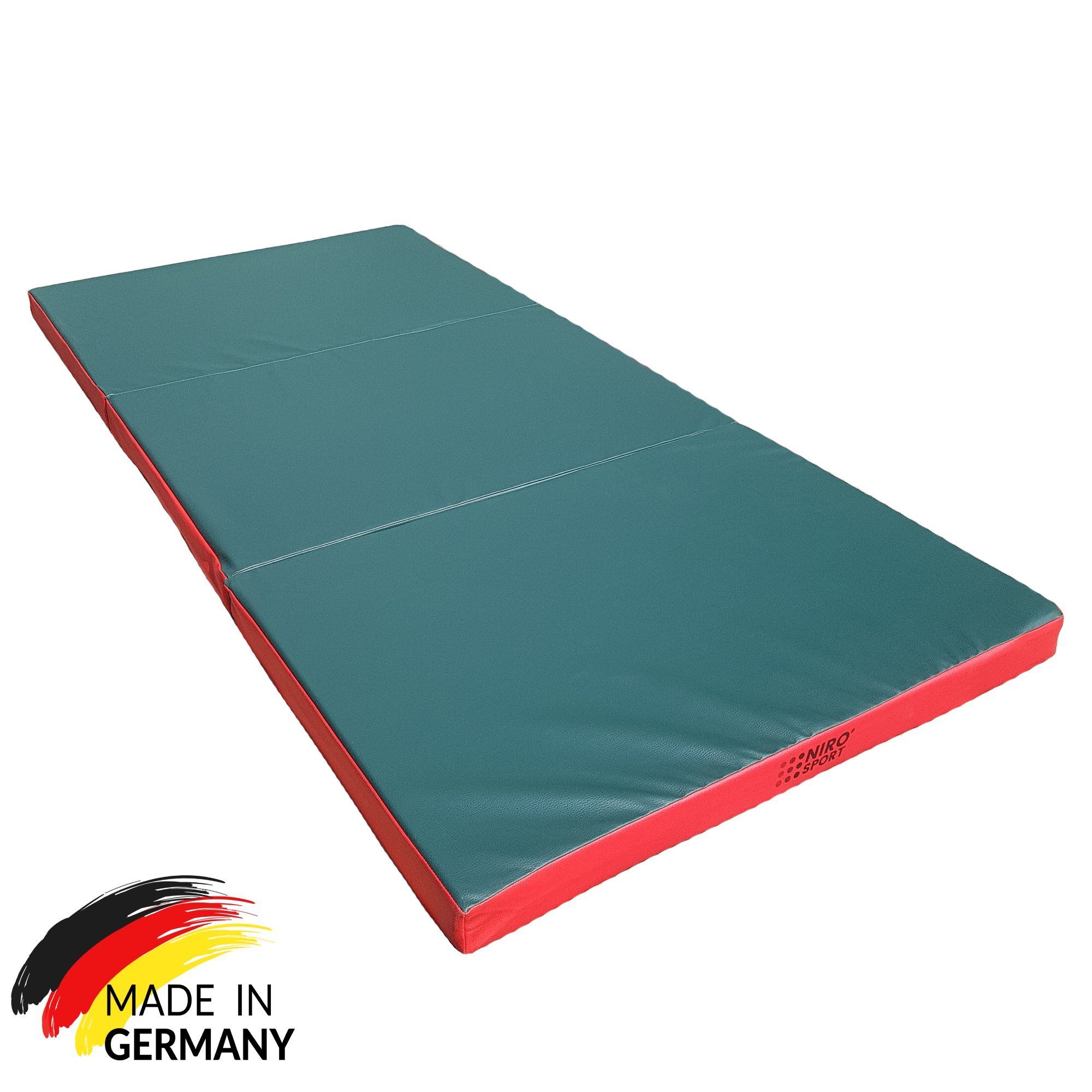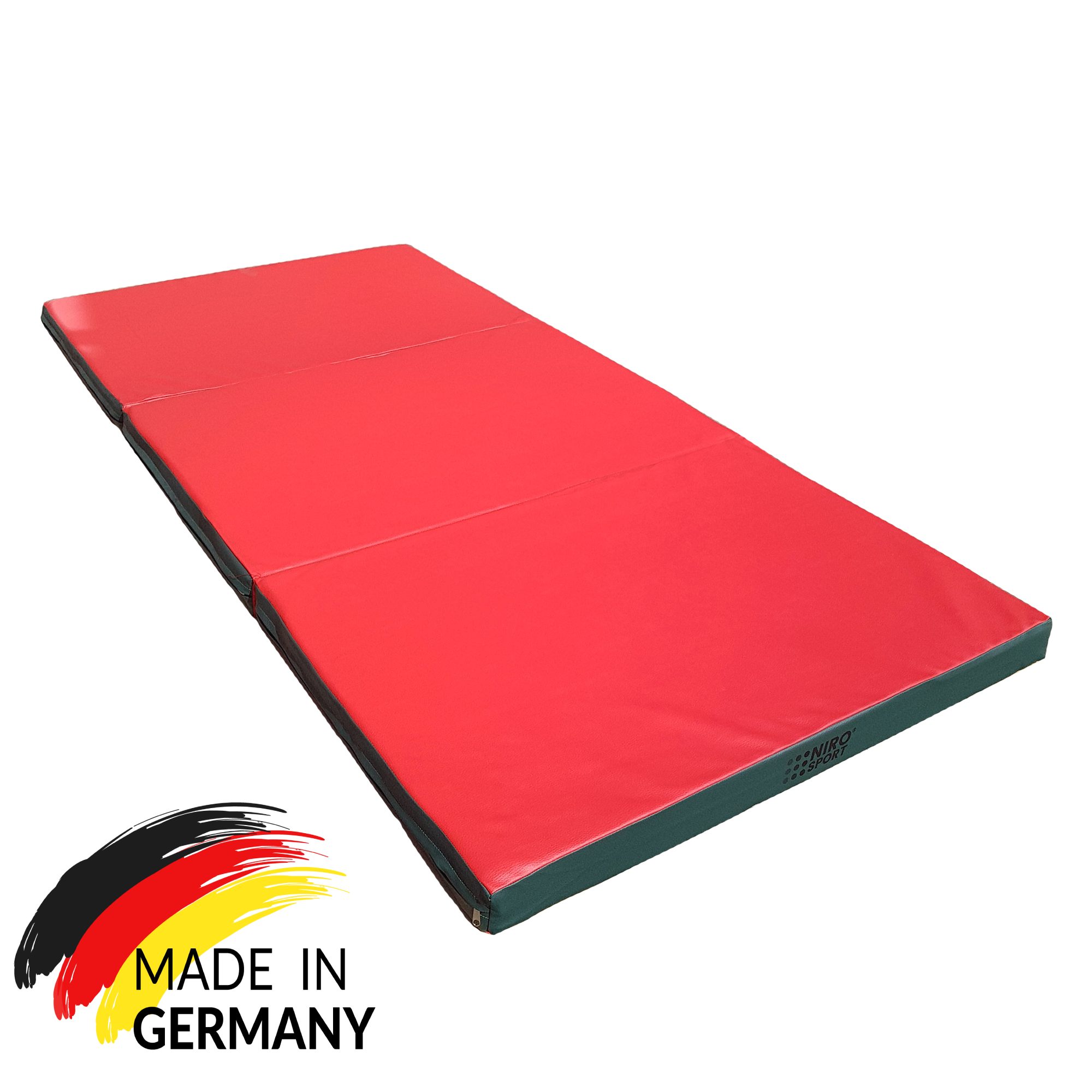 Die robuste Oberfläche der Matte besteht aus einem hochwertigen hautfreundlichen Kunstleder und ist rutschfest, abwaschbar und speichelfest. Das Innenfutter besteht aus einem hochwertigen Schaumstoff mit erhöhter Dichte. Die Verwendung dieses Schaumstoffes verleiht der Matte Weichheit und gleichzeitig den nötigen Schutz beim Fallen. MATTENBEZUG Turnmattenstoff mit Narbenstruktur Der Bezug dieser Turnmatte besteht aus einem hochwertigen und hautfreundlichen Kunstleder. Die robuste Oberfläche der Matte ist rutschfest, abwaschbar und speichelfest. INNENMATERIAL Polyurethan-Schaumstoff Das Innenfutter der Matte besteht aus einem hochwertigen Schaumstoff mit erhöhter Dichte. Die Verwendung dieses Schaumstoffes verleiht der Trainingsmatte Weichheit und gleichzeitig den nötigen Schutz beim Fallen. MADE IN GERMANY Wir produzieren unsere Matten in Deutschland ausschließlich aus umweltfreundlichen Materialien. NiroSport Turnmatten haben eine außerordentlich hohe Qualität und Langlebigkeit und werden deshalb in vielen deutschen und europäischen Schulen, Kindergärten und Sporteinrichtungen gerne eingesetzt. SONDERANFERTIGUNG Falls Sie eine Matte benötigen, die genau auf Ihre individuelle Bedürfnisse zugeschnitten werden soll, dann nehmen Sie einfach Kontakt mit uns auf. Die gewünschte Matte wird innerhalb von wenigen Tagen angefertigt und zugestellt. ANWENDUNG Sportmatten finden ihre hauptsächliche Anwendung bei den Turnsportarten, wie Geräteturnen, dem Bodenturnen oder auch Kinderturnen aber auch bei Kampfsportarten wie Judo oder Ringen. Sie dienen aufgrund ihrer speziellen Eigenschaften dazu, die Landung des Sportlers nach dem Abheben vom Boden so weich und gelenkschonend wie möglich zu gestalten, um so Verletzungen vorzubeugen. Gerade im Schul- und Vereinssport ist daher die Wahl der richtigen und qualitativ hochwertigen Sportmatte absolut notwendig. Turnmatten sind kein sportlichen Accessoires, sondern ein wichtiges Sportgerät für den richtigen und damit gesunden Bewegungsablauf bei allen sportlichen Aktivitäten, die im Liegen oder zum Teil auch Sitzen ausgeübt werden. Der Bewegungsmangel hat längst auch die Kinderzimmer erreicht. In einer Zeit, die geprägt ist von Computerspielen, Fernsehen und Spielkonsolen kommt eine gesunde Bewegung ins Hintertreffen. Kinder müssen wieder die Freude an der gesunden Bewegung für sich entdecken. Gerade wenn die Anforderungen in der Schule steigen ist der körperliche Ausgleich wichtig. Übergewicht, sowie Herz-, Kreislauf-, und Wirbelsäulenerkrankungen können ansonsten die Folge sein. HIGHLIGHTS hochwertige Turnmatte mit einem Bezug aus Turnmattenstoff gut geeignet für die Kinder und Erwachsene zum Turnen an Geräten ideal für das angstfreie Turnen im Kinderzimmer für eine harmonische Entwicklung von Kindern und Erwachsenen geeignet für Gymnastik, Yoga, Turnen, Judo, Ringen, Pilates, Aerobic usw. HOHE QUALITÄT UND LANGLEBIGKEIT Unsere Weichbodenmatten werden unter anderem auch in Schulen, Kindergärten und Turnhallen eingesetzt, da sie eine außerordentlich hohe Qualität und Langlebigkeit haben. NiroSport Bodenmatten werden in Deutschland gefertigt. EIGENSCHAFTEN Die robuste Oberfläche der Matte besteht aus einem hochwertigen hautfreundlichen Kunstleder und ist rutschfest, abwaschbar und speichelfest. Das Innenfutter besteht aus einem hochwertigen Schaumstoff mit erhöhter Dichte. Die Verwendung dieses Schaumstoffes verleiht der Matte Weichheit und gleichzeitig den nötigen Schutz beim Fallen. MULTIFUNKTIONAL Turnmatten von NiRo.Sportgeräte GmbH sind hervorragend geeignet für sichere Boden- und Gymnastikübungen, Pilates, Aerobic, Yoga, Judo, Ringen und viele weitere Sportarten. Sie sind ideal für Übungen sowohl im Zimmer als auch in der Sporthalle. Unsere Matten sind tauglich sowohl für die Kinder als auch für Erwachsene - egal ob Anfänger oder Fortgeschrittener. Die Matten sind auch perfekt als Unterlagen bzw. Fallschutzmatten für Klettergerüste und Sprossenwände geeignet. GARANTIE Sie können sich auf die Qualität von Niro Sportgeräte GmbH verlassen! Sollten Sie die Garantie aufgrund eines Herstellungsfehlers in Anspruch nehmen, ersetzen wir das Produkt kostenlos und schnell. Wir stehen Ihnen für alle Fragen und Wünsche gerne zur Verfügung!