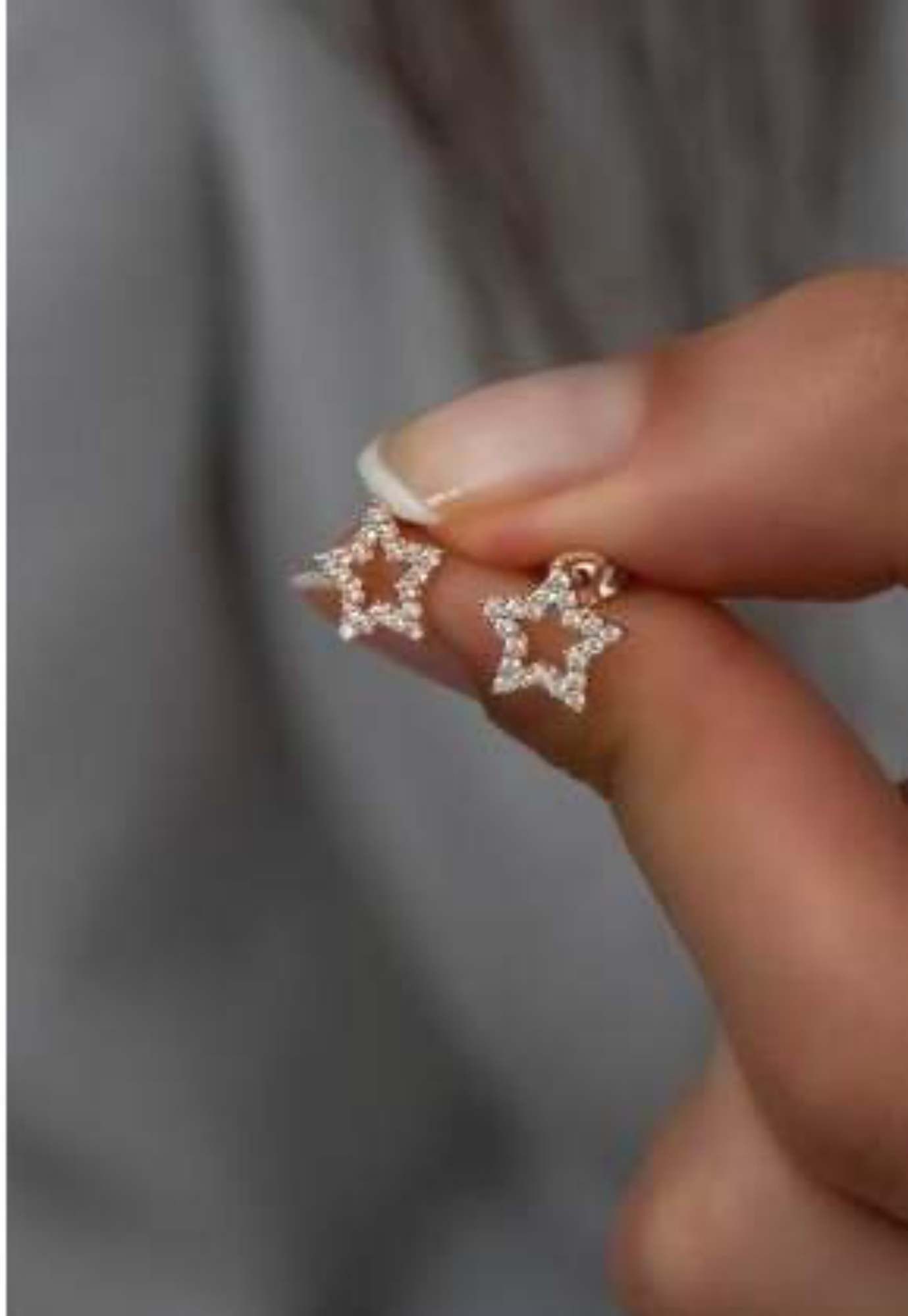 Diese eleganten Ohrstecker aus 925 Sterling Silber mit Rosévergoldung sind in Form eines funkelnden Sterns gestaltet. Verziert mit glitzernden Zirkonia-Steinen strahlen sie zeitlose Eleganz und jugendliche Frische zugleich aus. Der Stern als Symbol für Hoffnung und Inspiration macht diese Ohrstecker zu einem stilvollen Accessoire, das jedes Outfit bereichert. Dank der kompakten Размер sind sie angenehm leicht zu tragen und sowohl für den Alltag als auch für besondere Momente geeignet. Geliefert in einer edlen Schmuckbox sind sie außerdem eine hervorragende Geschenkidee.
