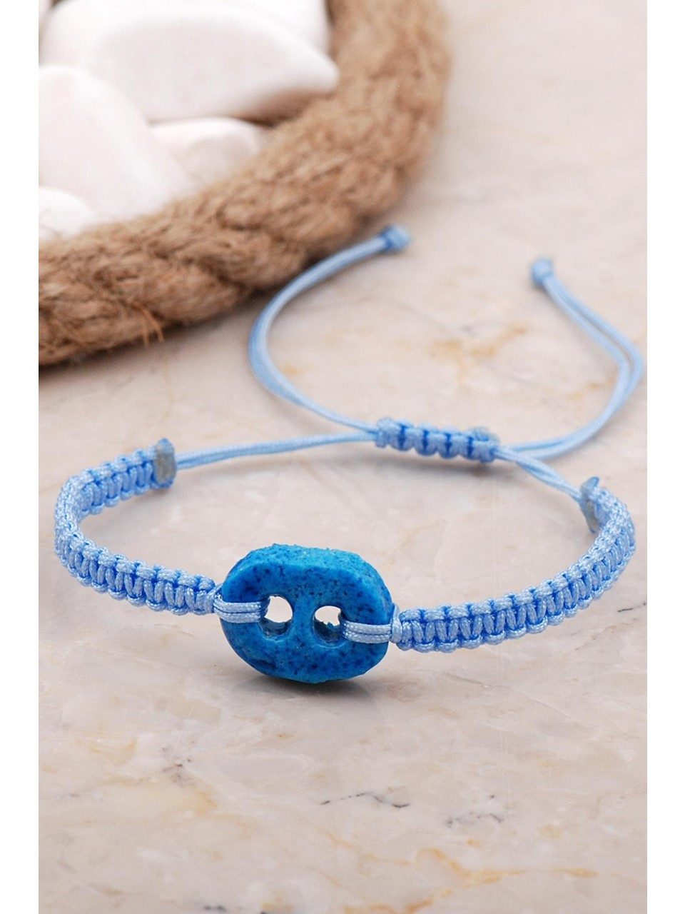Handgefertigtes Makrame-Armband mit syrischem Nazar-Amulett in traditionellem Design.