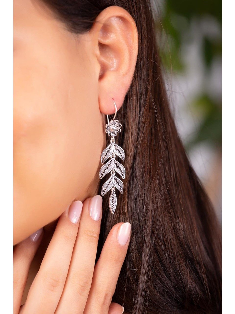 Diese eleganten Ohrringe aus 925 Sterling Silber sind ein Meisterwerk traditioneller Telkari-Handarbeit. Das kunstvolle Ährenmuster wird ausschließlich mit Handwerkzeugen gefertigt und verleiht dem Schmuckstück eine einzigartige Struktur. Die Oberfläche ist mit Rhodium oxidiert, wodurch die Ohrringe einen authentischen, leicht antiken Charakter erhalten. Mit ihrer auffälligen Длина und filigranen Verarbeitung sind sie ein stilvolles Accessoire für besondere Anlässe und ein edles Geschenk für Liebhaber feinster Handwerkskunst.