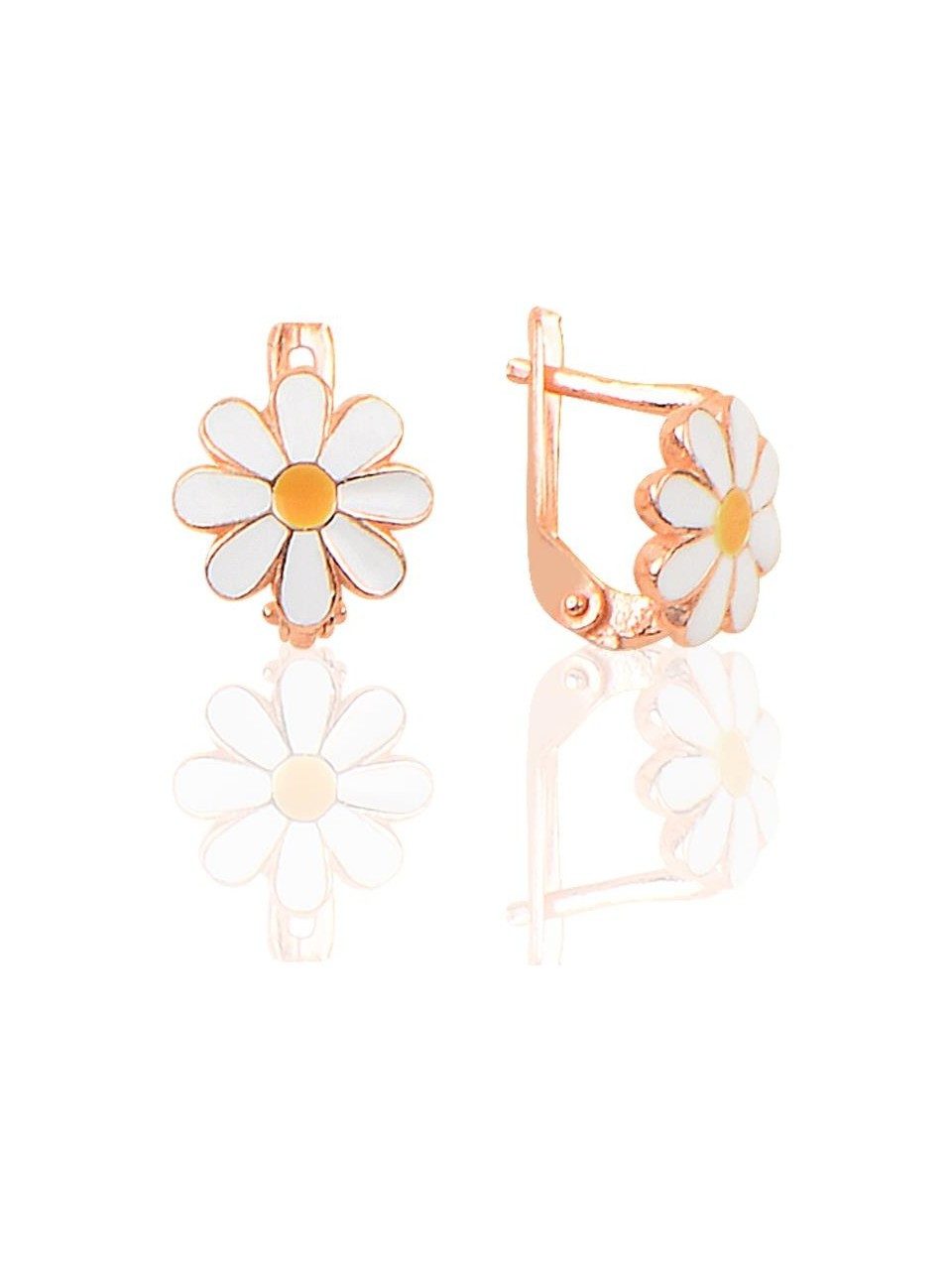 Diese entzückenden Ohrringe in Gänseblümchen-Form sind aus echtem 925 Sterling Silber gefertigt und mit einer stilvollen Rosévergoldung versehen. Die Blütenblätter sind mit weißer Emaille verziert, während die Mitte in warmem Gelb erstrahlt – ein fröhliches und kindgerechtes Design. Mit ihrer Размер von ca. 8,5 mm sind die Stecker dezent, aber dennoch auffällig genug, um jedes Outfit zu verschönern. Der praktische Klappverschluss sorgt zudem für einfaches Anlegen und sicheren Halt.