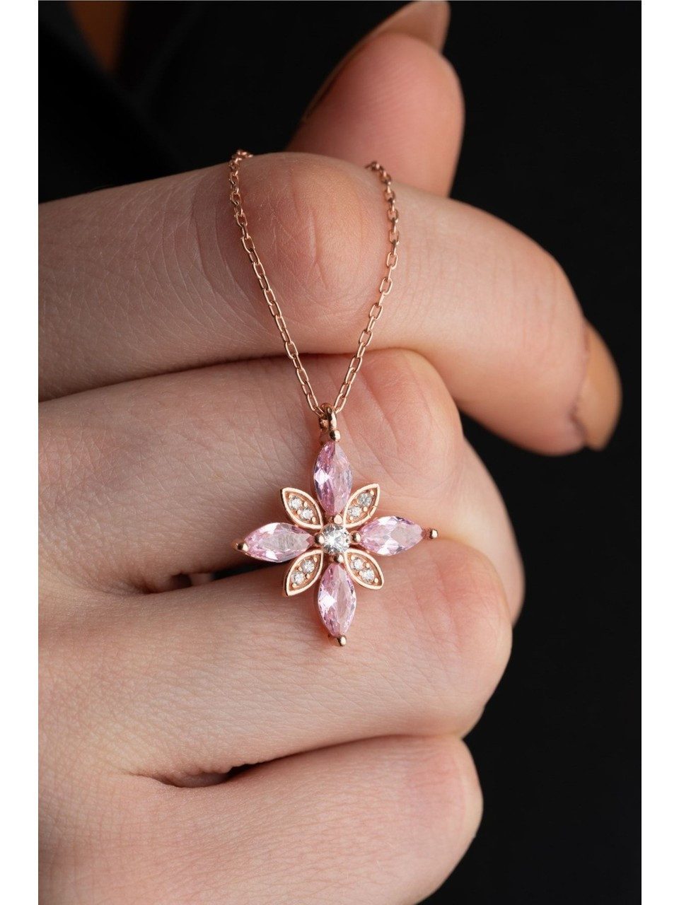 Diese stilvolle Damenhalskette aus 925 Sterling Silber überzeugt mit einem kunstvoll gestalteten Blütenanhänger, der mit funkelnden rosa und klaren Zirkonia-Steinen besetzt ist. Die filigrane Blume, auch als „Hoffnungsblüte“ bekannt, symbolisiert Optimismus, Liebe und neue Anfänge. Mit einer Размер von ca. 1,9 x 1,9 cm und einem Gewicht von rund 2,70 g ist der Anhänger ein harmonisches Accessoire, das sowohl im Alltag als auch zu besonderen Anlässen getragen werden kann. Die 42 cm lange Kette mit Rosévergoldung verleiht dem Schmuckstück eine warme Ausstrahlung. Geliefert wird die Halskette in einer Schmuckbox – ideal auch als Geschenk.