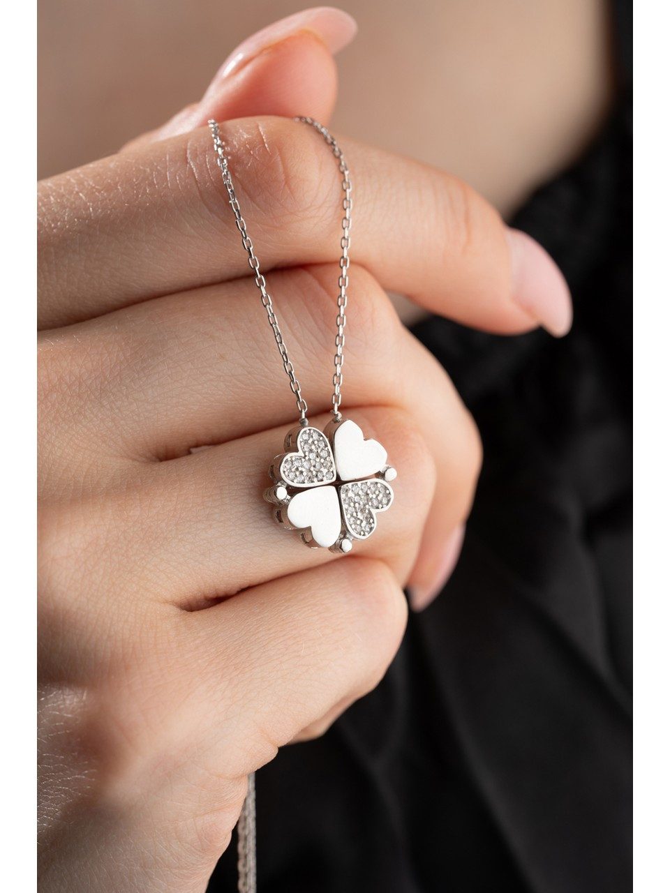 Abnehmbarer Anhänger: Kleeblatt-Design, das sich in mehrere Herz-Elemente verwandeln lässt, sorgt für Vielseitigkeit und kreatives Tragen.