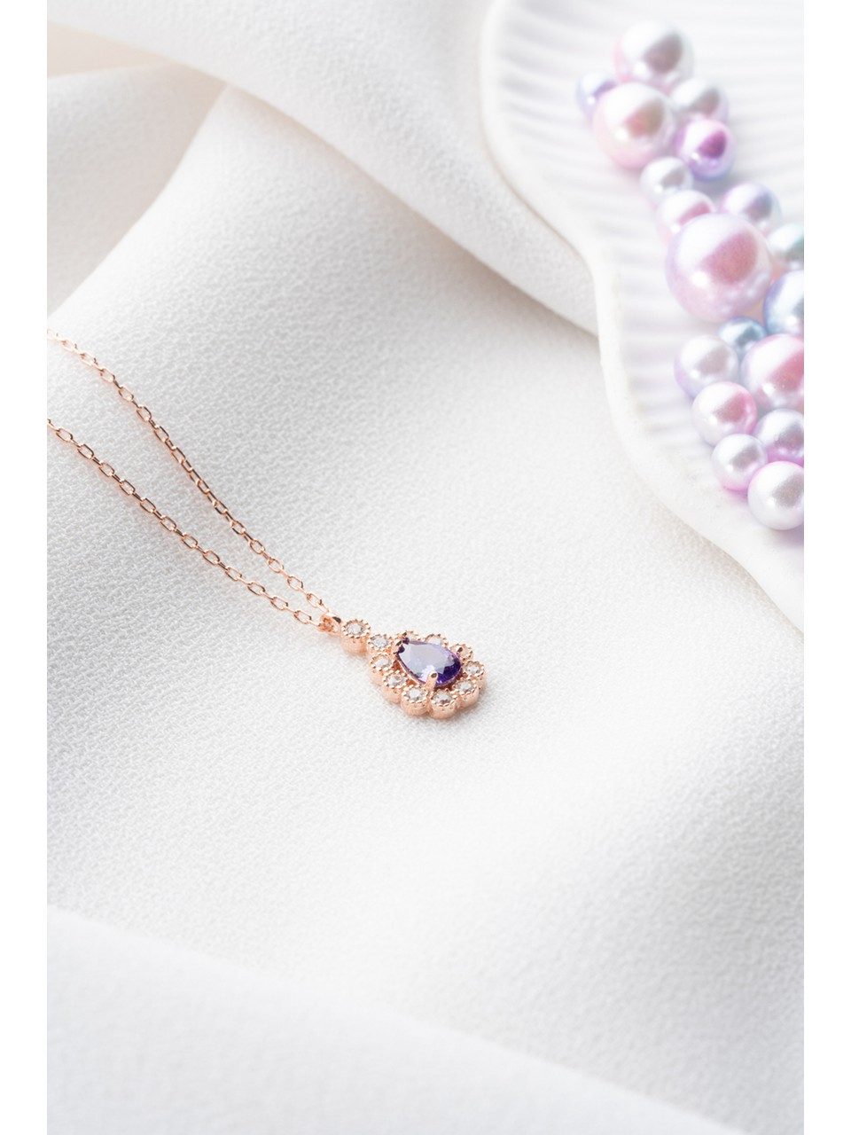 Diese elegante Halskette aus 925er Sterling Silber besticht durch ihren Tropfen-Anhänger mit violettem Zirkonia, der in einem feinen Diamant-Montur-Stil gefasst ist. Die Kombination aus funkelndem Stein und detailreicher Rosévergoldung verleiht dem Schmuckstück eine edle und feminine Ausstrahlung. Durch die zarte Kette und das leichte Gewicht eignet sich die Kette hervorragend sowohl für den Alltag als auch für festliche Anlässe.