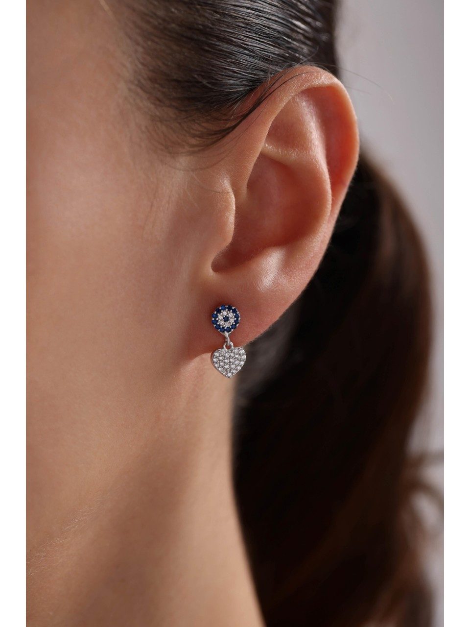 Diese filigranen Ohrringe aus echtem 925 Sterling Silber mit rhodinierter Oberfläche kombinieren das traditionelle Nazar-Motiv mit einem funkelnden Herz-Anhänger. Das Nazar-Auge gilt als Schutzsymbol, während das Herz für Liebe und Zuneigung steht – eine harmonische Verbindung von Symbolik und Eleganz. Mit funkelnden Zirkonia-Steinen besetzt, verleihen die Ohrringe jedem Outfit eine stilvolle und zugleich bedeutungsvolle Note.