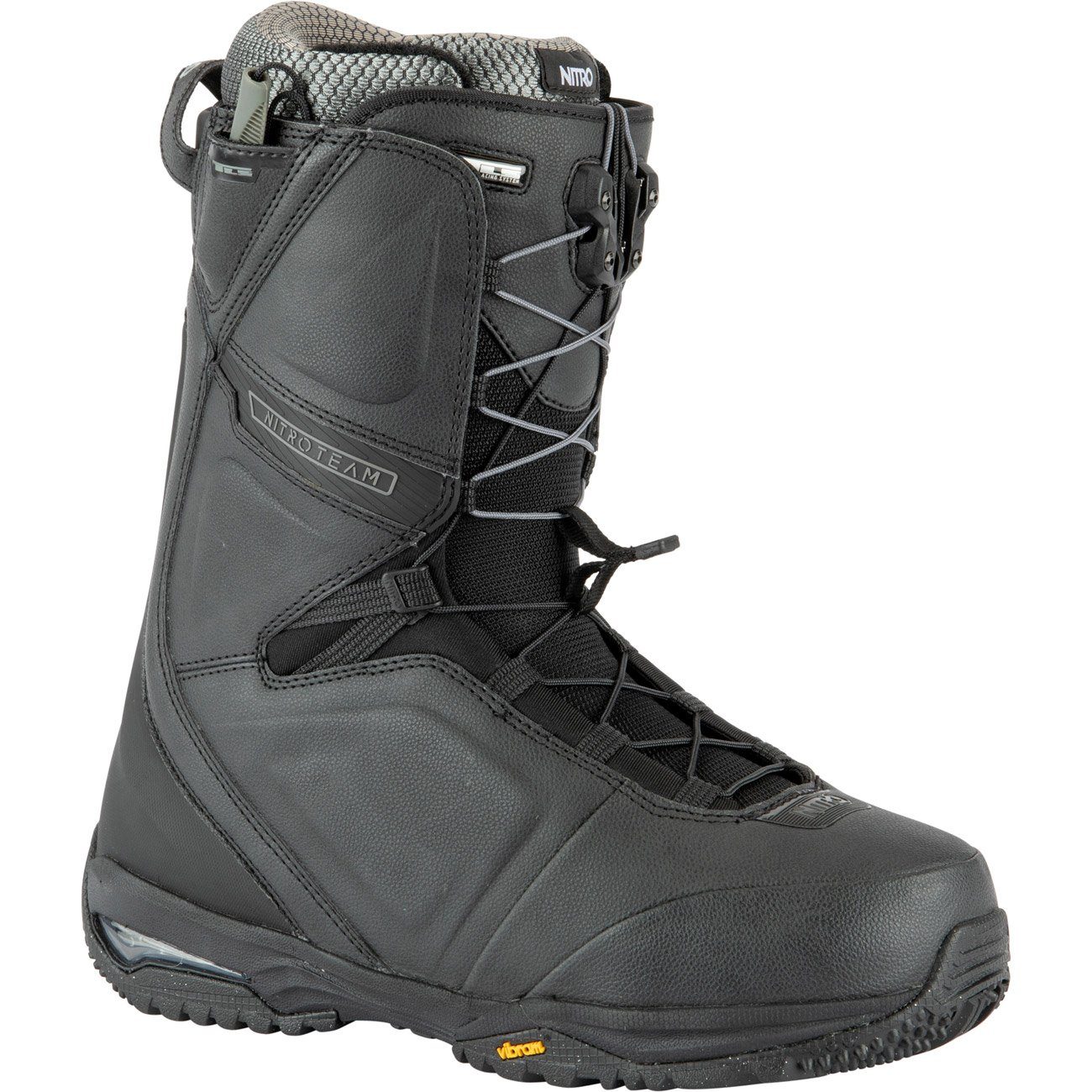 Der Lieblingsschuh des Pro-TeamsNitro's meist gefeierter und preisgekrönter Snowboardboot aus gutem Grund. Der Nitro Team liefert Jahr für Jahr teamgetestete und erprobte Performance und wird von Snowboardern auf der ganzen Welt als der vielseitigste Snowboardboot auf dem Markt angesehen - mit einer Passform, die garantiert nicht aufgibt.Der Nitro Team Boot ist die erste Wahl für Snowboarder auf der ganzen Welt, von Profis bis hin zu lokalen Legenden, wegen seiner unbestreitbar bequemen Passform, dem vielseitigen Flex und der bewährten Performance. Ausgestattet mit einer Vibram®-Außensohle aus Vibram® ECOSTEP Compound, einer EVA-Midsole und dem Air Dampening unter den Füßen für überragende Dämpfung beim ganztägigen Boarden im Gebiet und besten Grip bei Ausflügen zum Gipfel nach Schließung der Lifte. Erhältlich mit Standardschnürung oder mit Nitros bewährtem TLS Twin Lacing System für eine individuelle Passform und ein Upgrade in Schnelligkeit dank des 45° Lacegliders für ein geschmeidiges Schnüren und zusätzliche Haltbarkeit der Schnürsenkel. Die Kombination aus Cloud 9 Liner und Ortholite® Dual Density Footbed sorgt für ganztägige Dämpfung und sicheren Halt. Gleichzeitig kannst du mit dem Re/Lace Liner Locker deinen Liner im Lift ganz einfach nachziehen, wenn du das Gefühl hast, dass du ihn während des Tages anpassen musst. Erfahrene Profis wie der Teamfahrer Eero Ettala fahren den Team Boot, weil er die nötige Stabilität, den Komfort, die Zuverlässigkeit und die Reaktion bietet, um die Messlatte noch höher zu legen. Es ist einfacher, an seine Grenzen zu gehen, wenn die Füße angenehm warm sind und genau das bewirkt das reflektierende Therminator Shield - es hält die Wärme im Schuh, wo sie hingehört, besonders an bitteren Wintertagen. Teamgeprüfte, bewährte Leistung mit einer Passform, die perfekt zu dir passt!