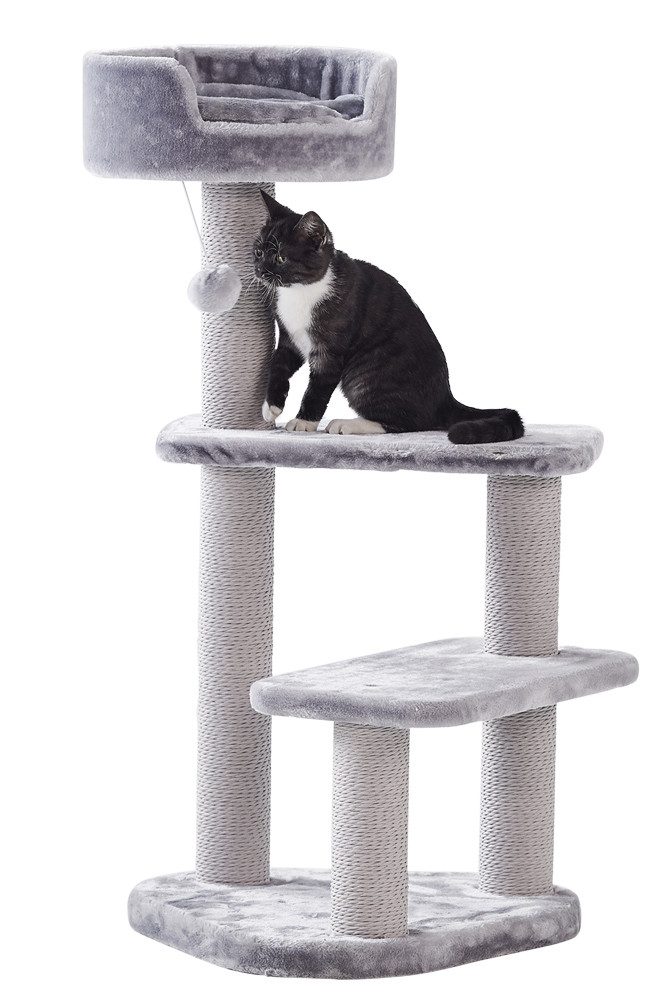 Auf kleinem Raum bietet dieser Nobby Classic Kratzbaum "Zera" alles, was ein Katzenherz begehrt. Verschiedene Liegeflächen und eine Platte mit Kissen bieten einen gemütlichen Rückzugsort für Ihre Katze. Die Bodenplatte mit den Maßen 50 x 50 cm sorgt dabei für einen stabilen Stand. Um auch Ihre Einrichtung zu schonen, bieten die Sisalstämme Ihrer Katze eine gute Alternative zur Pflege Ihrer Krallen. Dieser Kratzbaum hat eine Gesamthöhe von 97 cm.