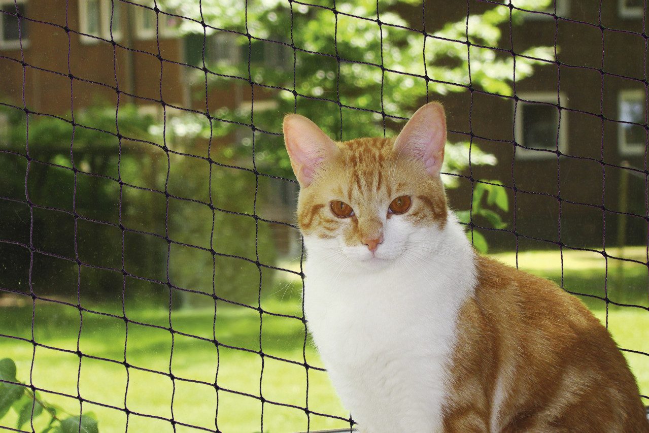 Auch Wohnungskatzen können am Leben außerhalb der vier Wände teilnehmen- vorausgesetzt es ist ein Balkon vorhanden. Dieses Schutznetz bietet Ihrer Katze Sicherheit, sowohl aufm dem Balkon als auch im Haus. Das Schutznetz ist aus Polyethylen hergestellt und hat eine Maschengröße von 3 x 3 cm. Es ist wetterfest und UV-beständig und kann deshalb besonders gut im Außenbereich verwendet werden. Erhältlich ist das Katzenschutzetz in drei verschiedenen Größen inklusive Befestigungsmaterial.