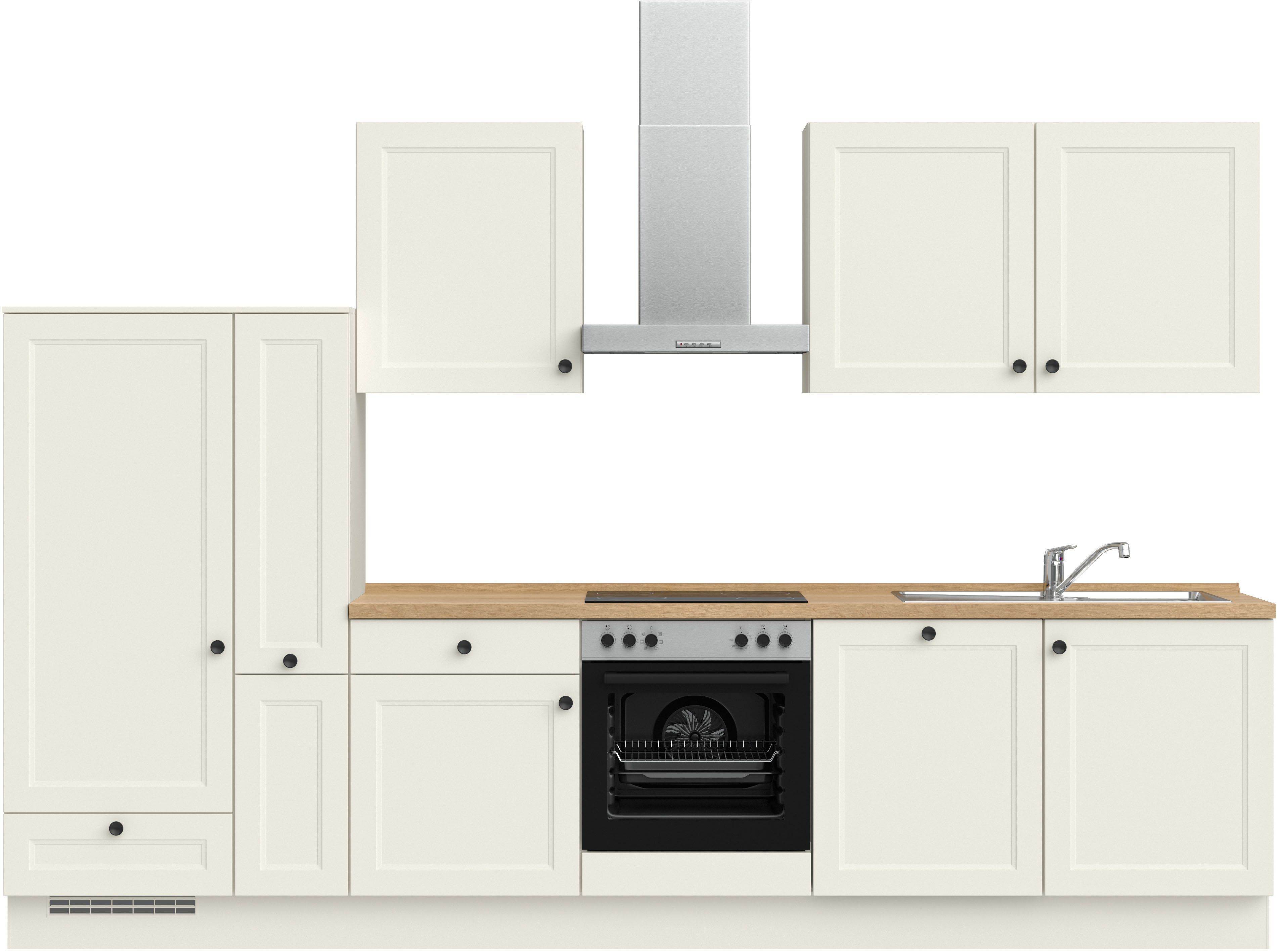 Ausstattung | Durchgehende Arbeitsplatte Einlegeböden höhenverstellbar Schubkästen mit Soft-Close-Funktion Türen mit Soft-Close-Funktion Wandabschlussleiste |