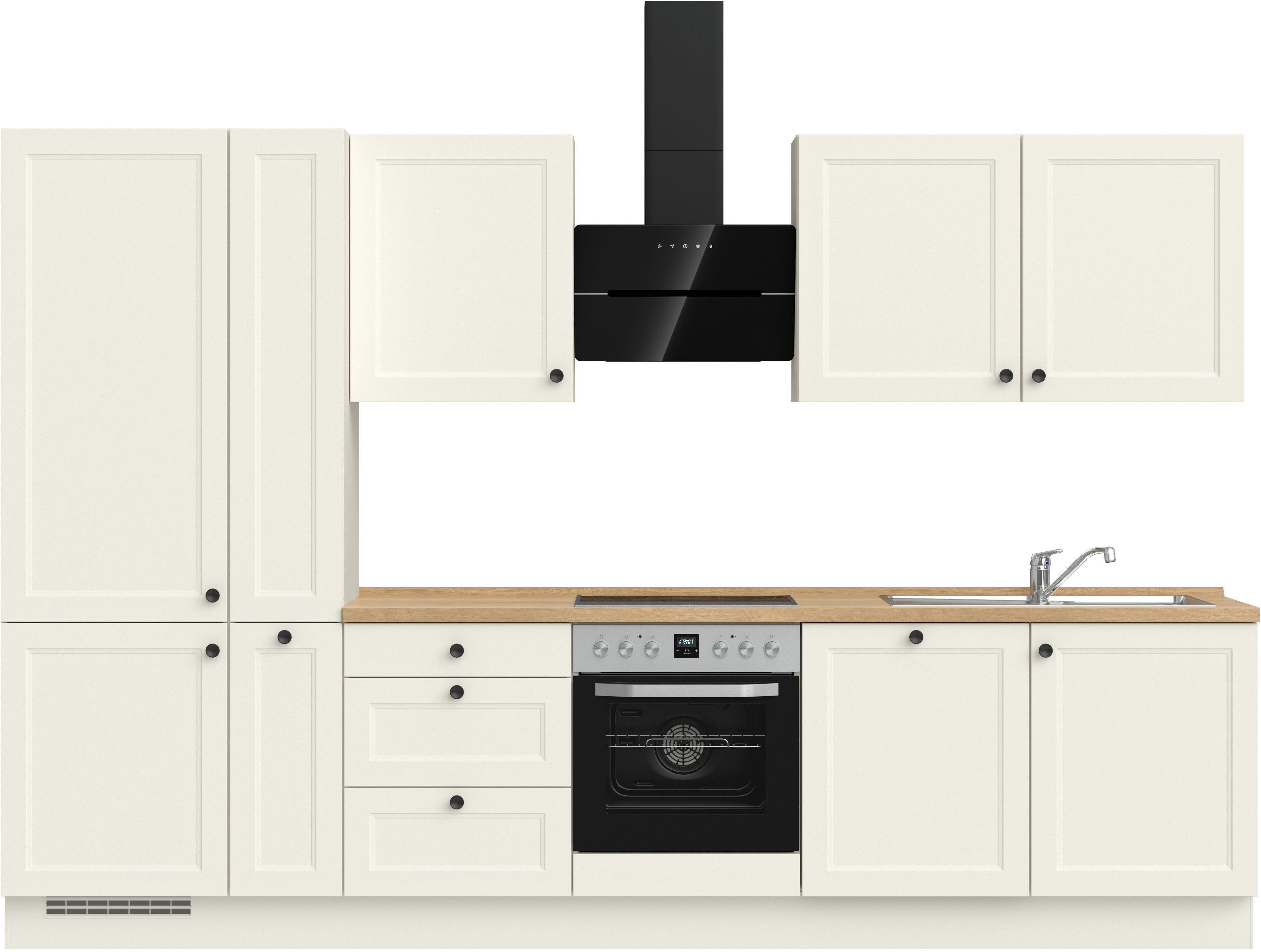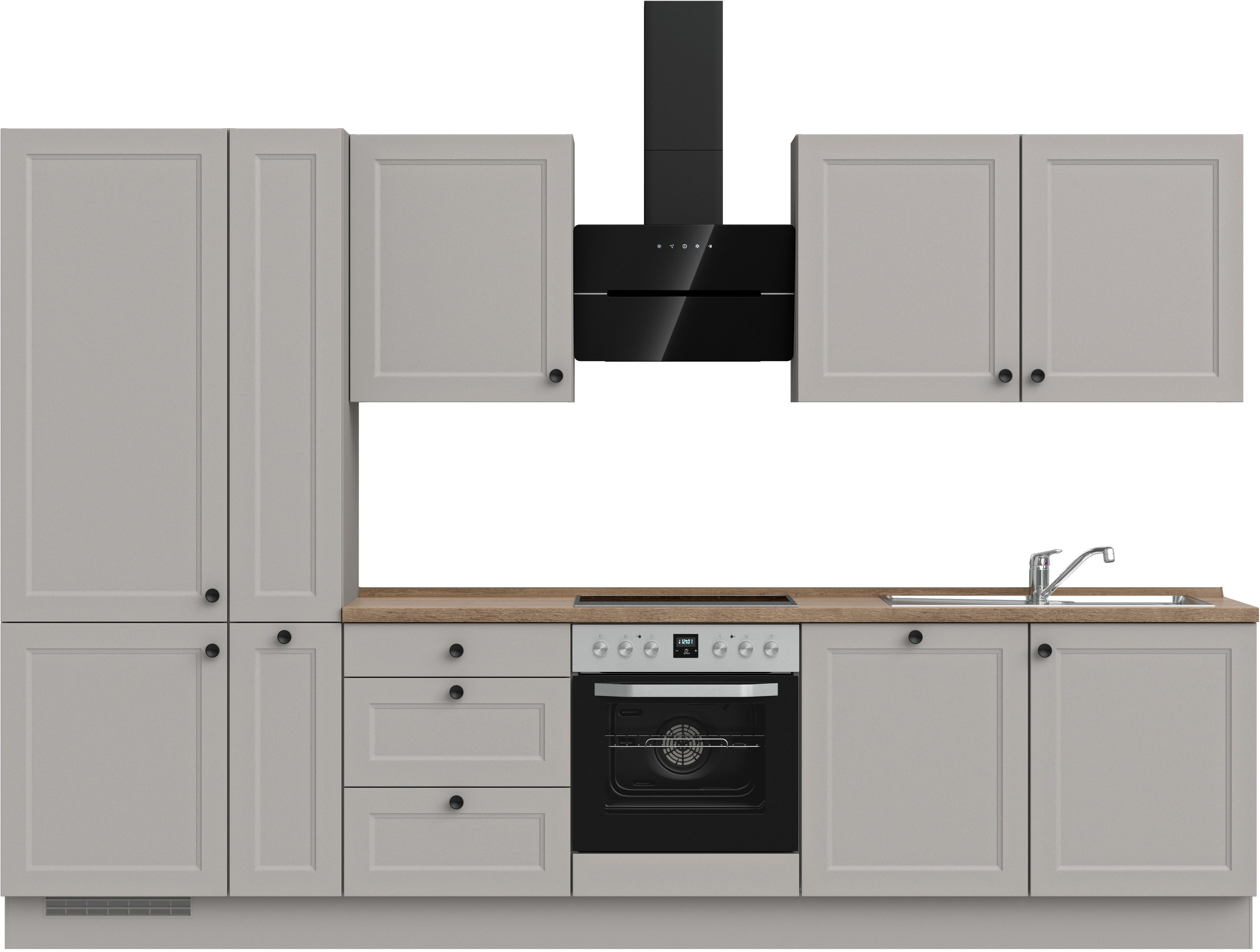 Ausstattung | Durchgehende Arbeitsplatte Einlegeböden höhenverstellbar Schubkästen mit Soft-Close-Funktion Türen mit Soft-Close-Funktion Wandabschlussleiste |