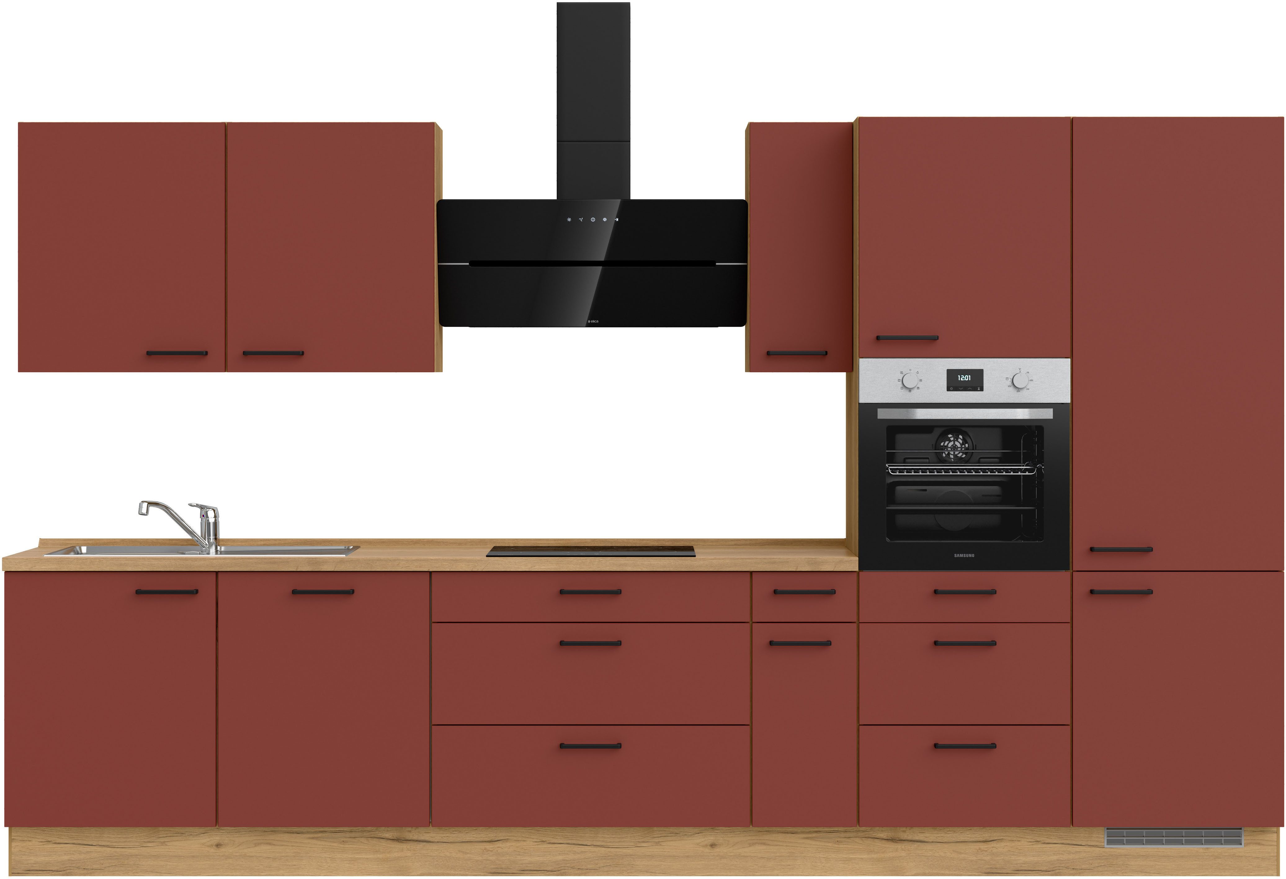 Ausstattung | Durchgehende Arbeitsplatte Einlegeböden höhenverstellbar Schubkästen mit Soft-Close-Funktion Türen mit Soft-Close-Funktion Wandabschlussleiste |